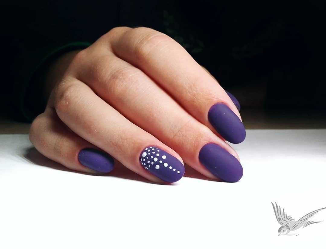 Осенний маникюр 2020 года можно дополнить пенным дизайном ногтей в топовых цветах сезона: бордовый, синий, черный, фиолетовый.