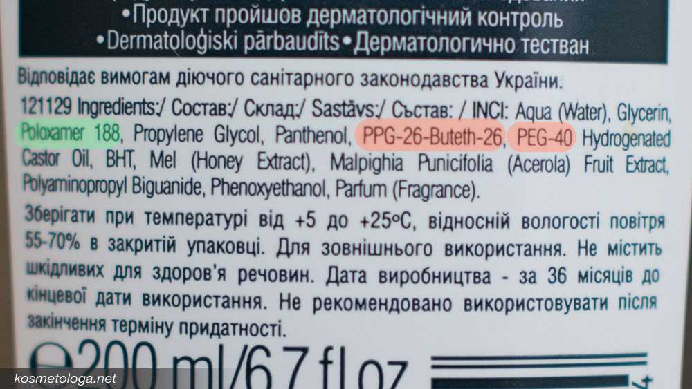 Натуральный PEG или ПАВ – поверхностно-активное вещество. Это растительные компоненты на основе косточек, семян, орехов, животных жиров. В отличие от синтетических, не вредят липидному слою кожи.