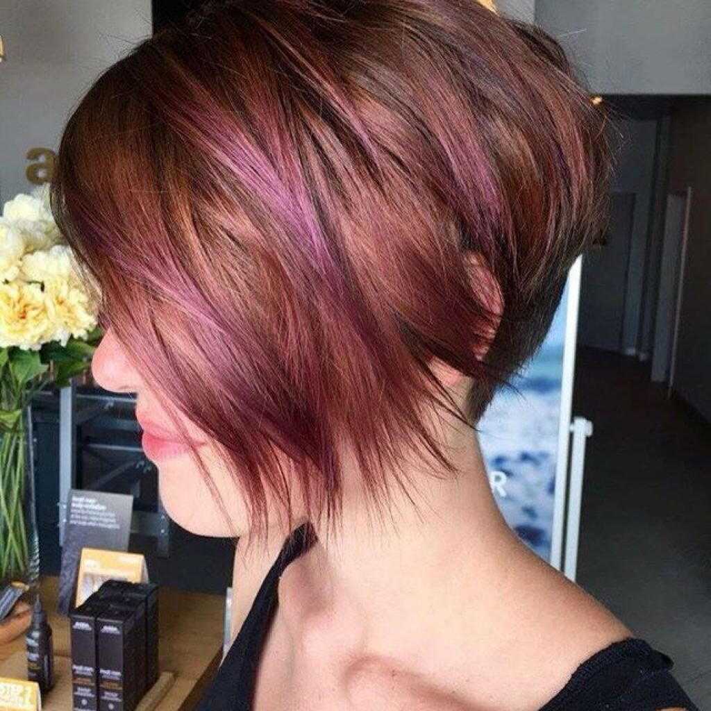 Асимметричное каре на короткие волосы — вариант для смелых и решительных красавиц. Добавьте немного прядей ярких оттенков или затемните корни, чтобы избавиться от скучности и однообразия во внешности.