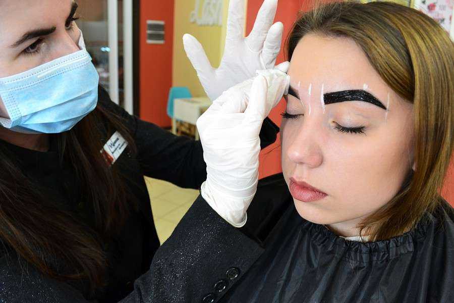 Моделирование и окрашивание бровей краской. Бровям придается естественный аккуратный вид
