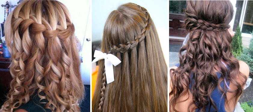 Различные вариации косичек на каждый день своими руками в технике «Водопад» выглядят настолько нежно и романтично, что ради этого стоит освоить саму схему плетения. В целом ничего сложного нет. Первый переплет делается как обычная коса. При следующем переплетении необходимо отпустить нижнюю прядь и вместо нее добавить боковой подхват. Можно плести 2 косы, объединяя их в центре или доводить до противоположного виска, спрятав концы под заколку с цветком.