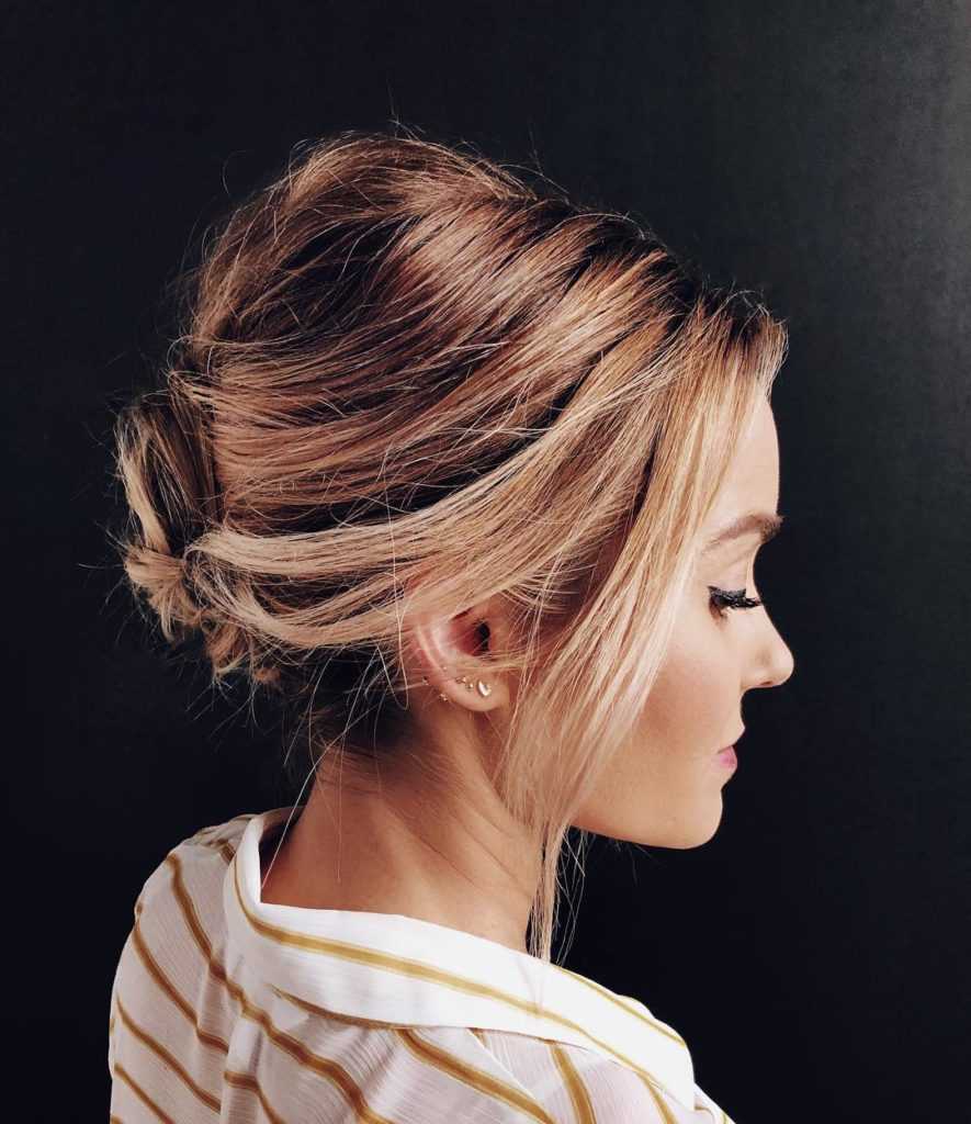 - Один из вариантов причесок, похожий на пучок, делается так: