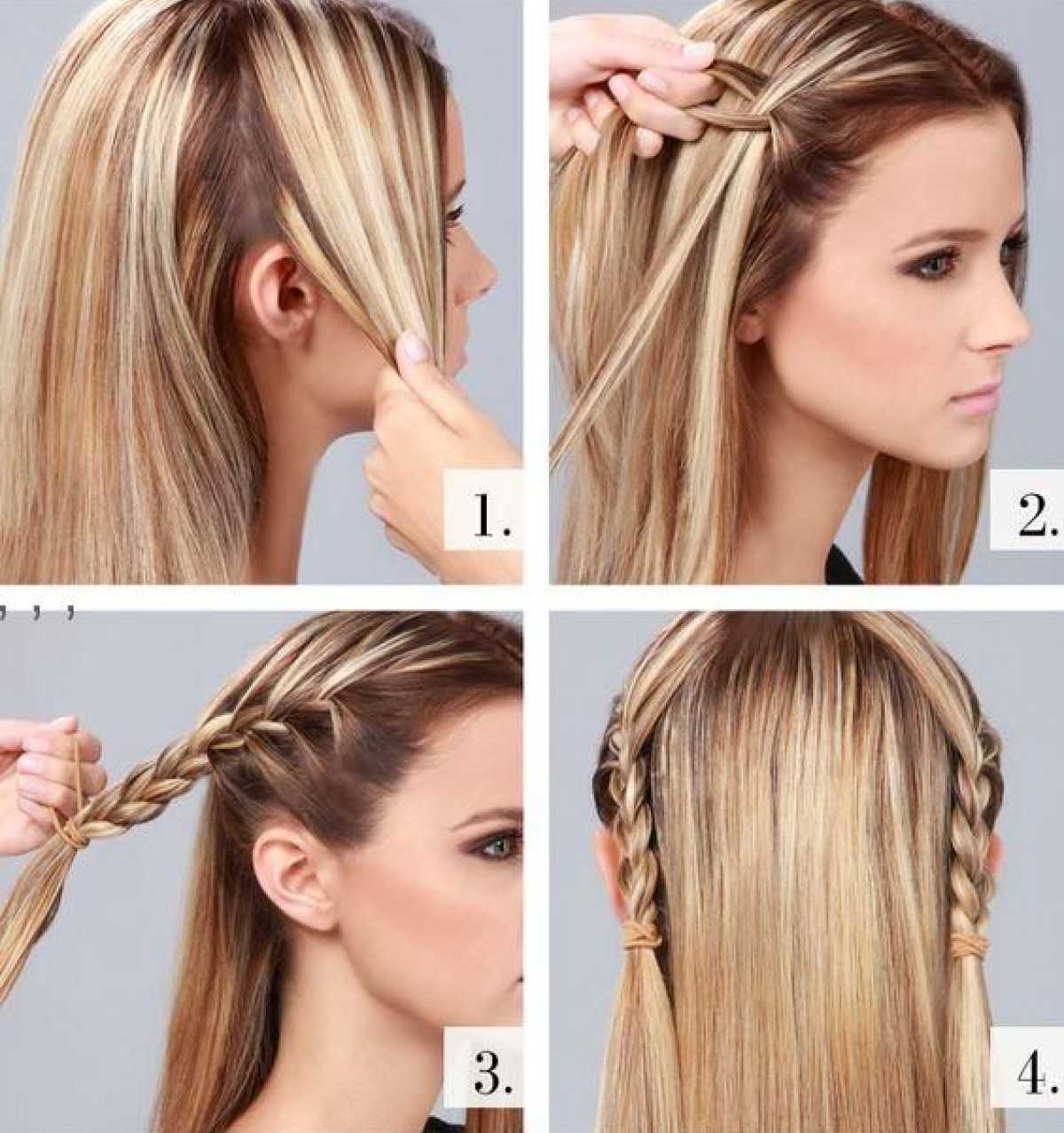 - По бокам отделите по одной толстой пряди и скрутите их по направлению друг к другу.