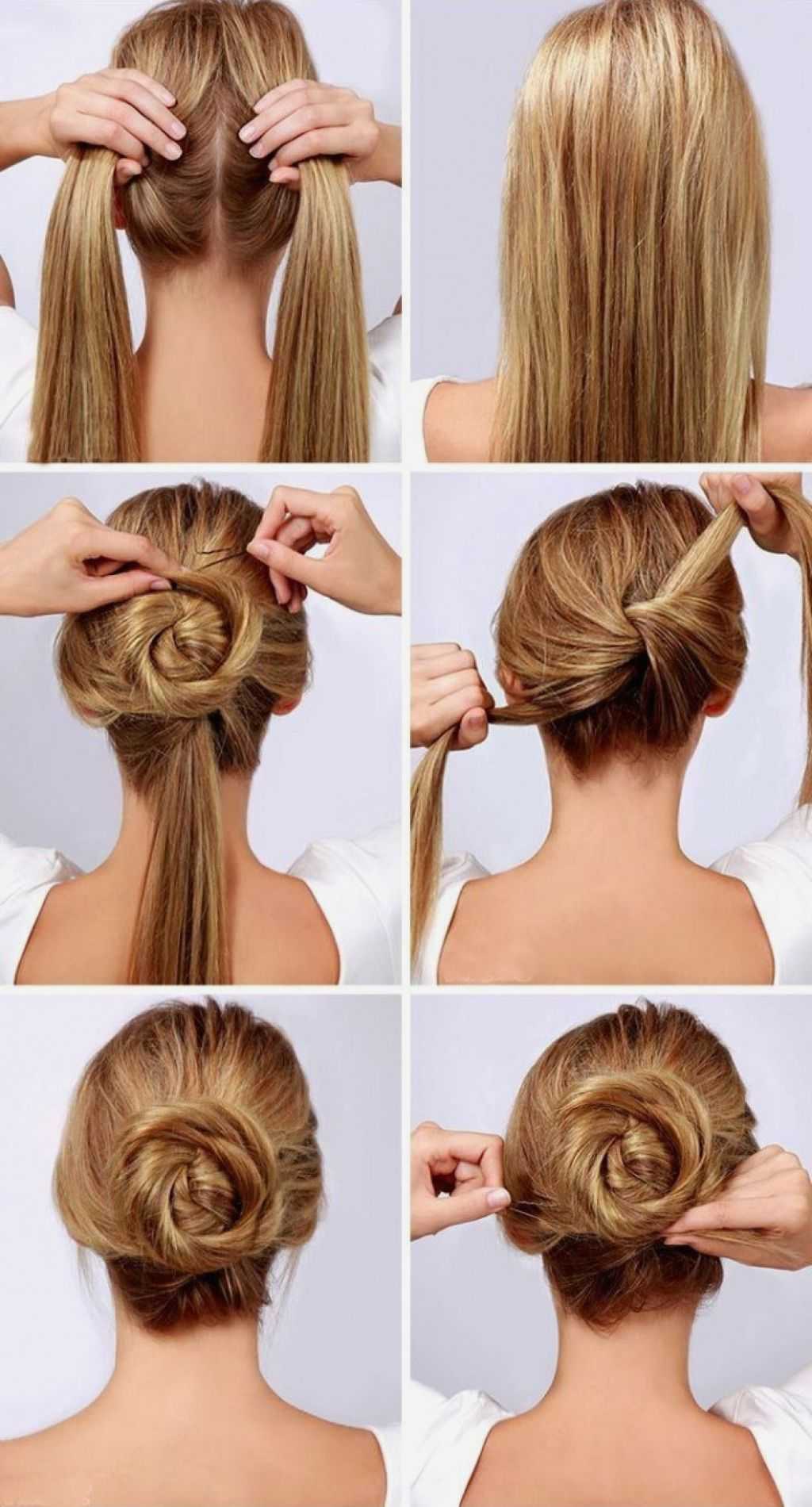 Прическу пучок на средние волосы можно исполнить разнообразными приемами. Рассмотрим это детально: