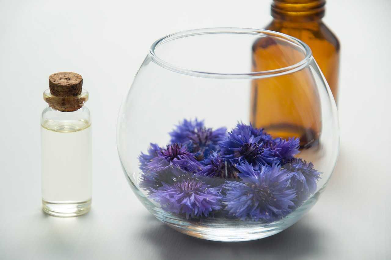 Для особо чувствительной кожи различные отдушки и консерванты в магазинных продуктах могут оказаться по-настоящему опасными. Лучшей альтернативой им станет средство, приготовленное дома самостоятельно. Для него нам потребуется касторовое масло, лепестки василька, крутой кипяток и емкости для смешивания. Готовьте средство по следующему алгоритму: