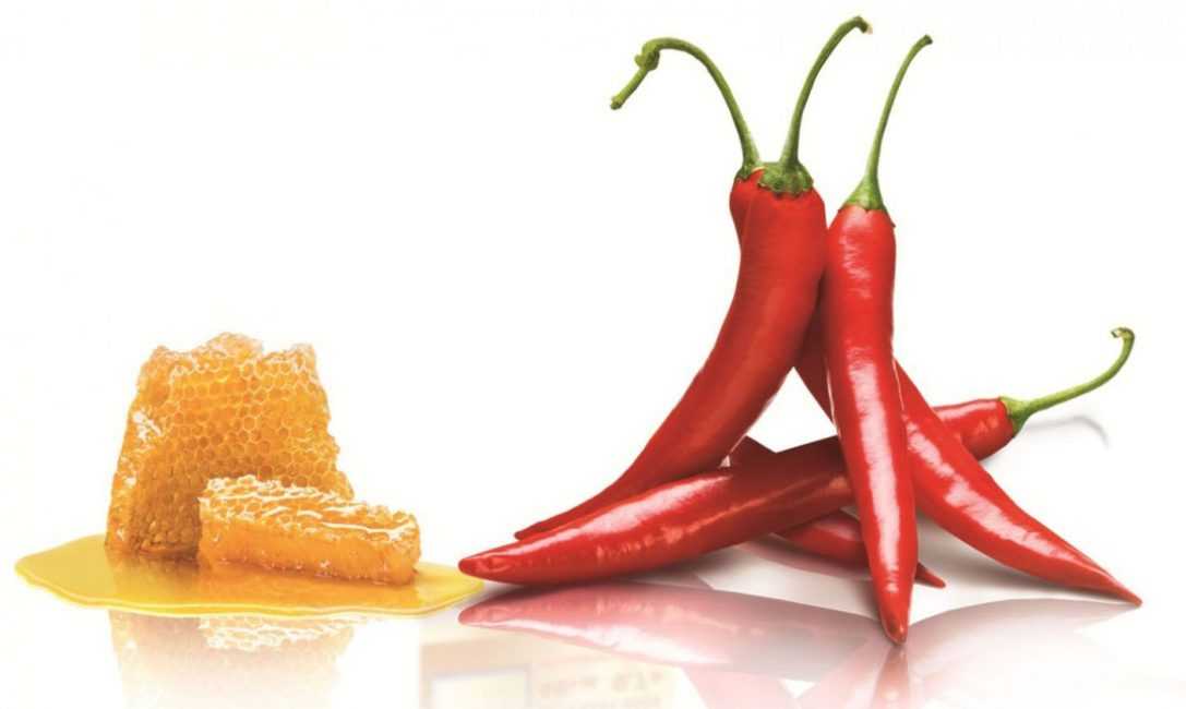 Имеющийся в составе меда витамин B5 хорошо укрепляет корни волос. Несложная в приготовлении маска служит для укрепления фолликул и нормализация работы сальных желез. Четыре ложки жидкого меда перемешайте с чайной ложкой красного молотого перца и нанесите эту смесь на корни волос. Так как перец весьма жгучий продукт, не стоит держать маску на волосах более получаса. Если возникло сильное жжение, необходимо промыть волосы. Перец усиливает кровообращение, облегчает проникновение активных веществ к фолликулам.