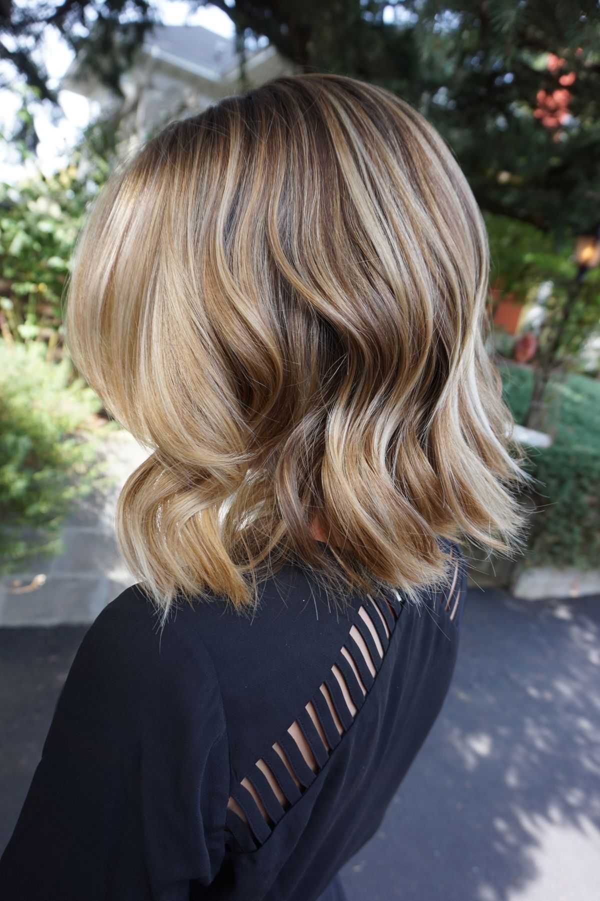 - Балаяж: осветляют пряди в нижней части, после чего красят волосы на затылке. Оттенок выбирают в зависимости от исходного цвета волос, но с небольшим контрастом;