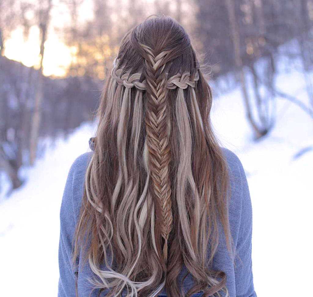 Дополните образ красивыми аксессуарами! Чтобы вам не мешали слишком длинные ниспадающие участки, соорудите в верхней части головы водопад. Пропустите несколько сантиметров для демонстрации струящихся волосков. А ниже соберите оставшуюся массу в одну общую трехпрядную косу. Немного ослабьте ее.