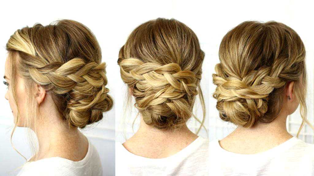 2. Тройная французская коса с пучком. Такой вариант прически «водопад» требует много времени и терпения.