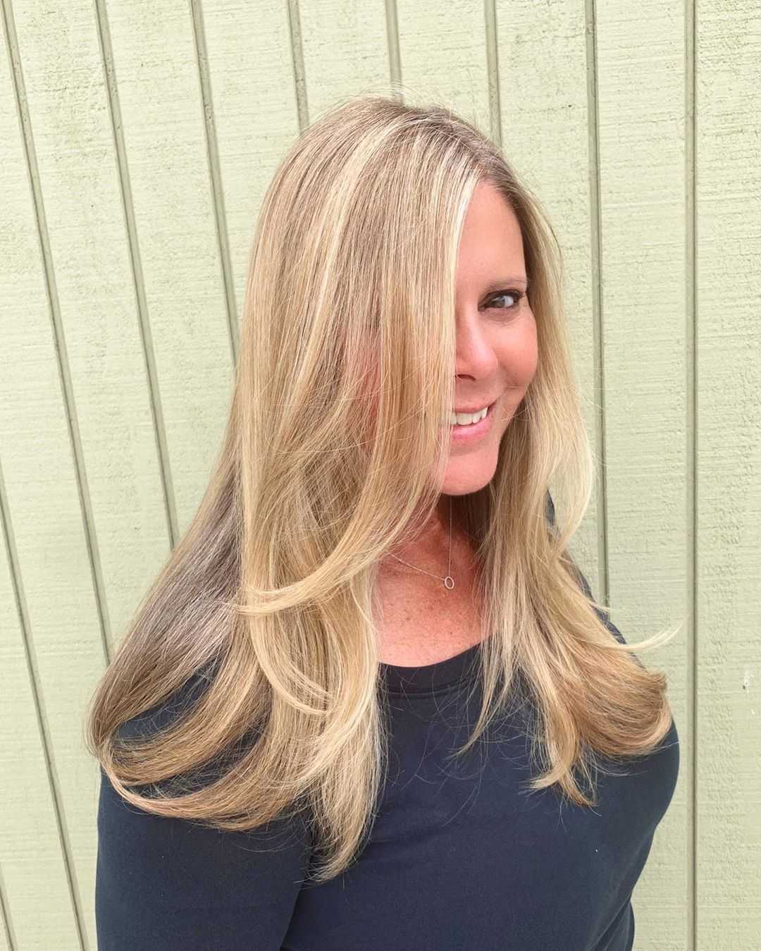 Эти волосы подходят для принцессы. Если у вас много волос, но пряди тонкие и шелковистые, эта стрижка подойдет идеально. Светлые локоны вокруг лица действительно подчеркивают цвет, а длинные сплошные слои делают стиль живым и женственным.
