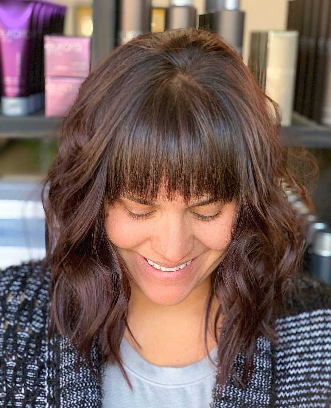Лучшее в рыхлых слоях многослойного стиля средней длины — это то, что это кокетливый стиль, над которым не нужно много работать. Волны создают встроенный стиль, а это значит, что вы можете встать с кровати и быть готовым отправиться в путь. Почти.