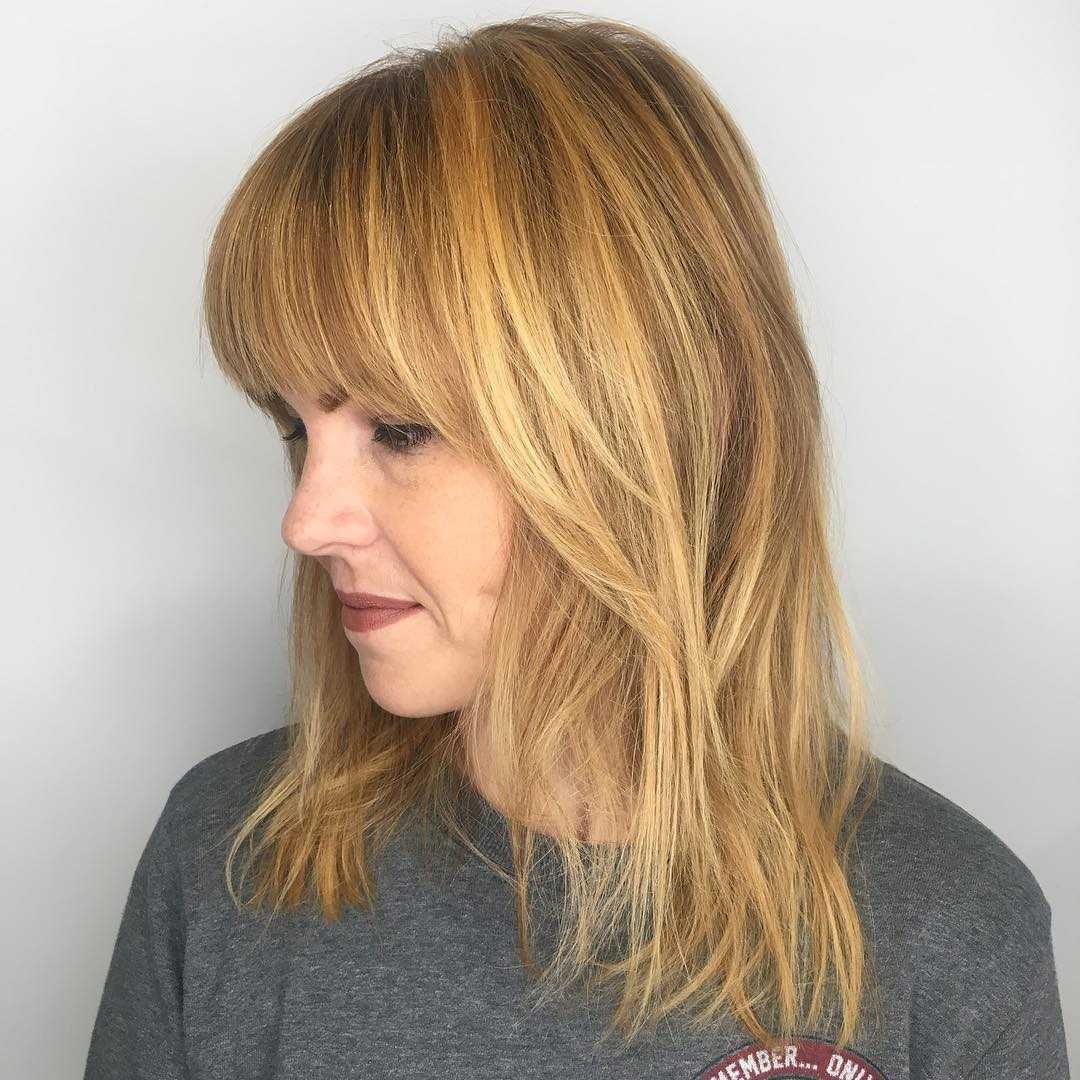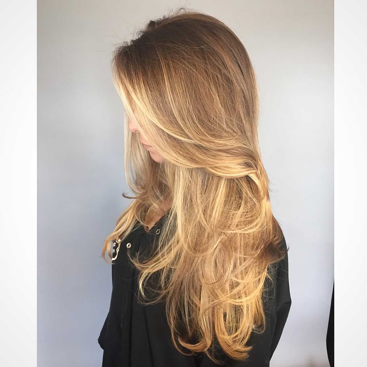Эти грубые слои идеально сочетаются с цветом и стилем пляжной блондинки. Это довольно современная прическа, модная, но не резкая. Эта прическа состоит из слоев примерно 5-6 дюймов для густых волос, а рваные части идеально подходят для волнистой укладки.
