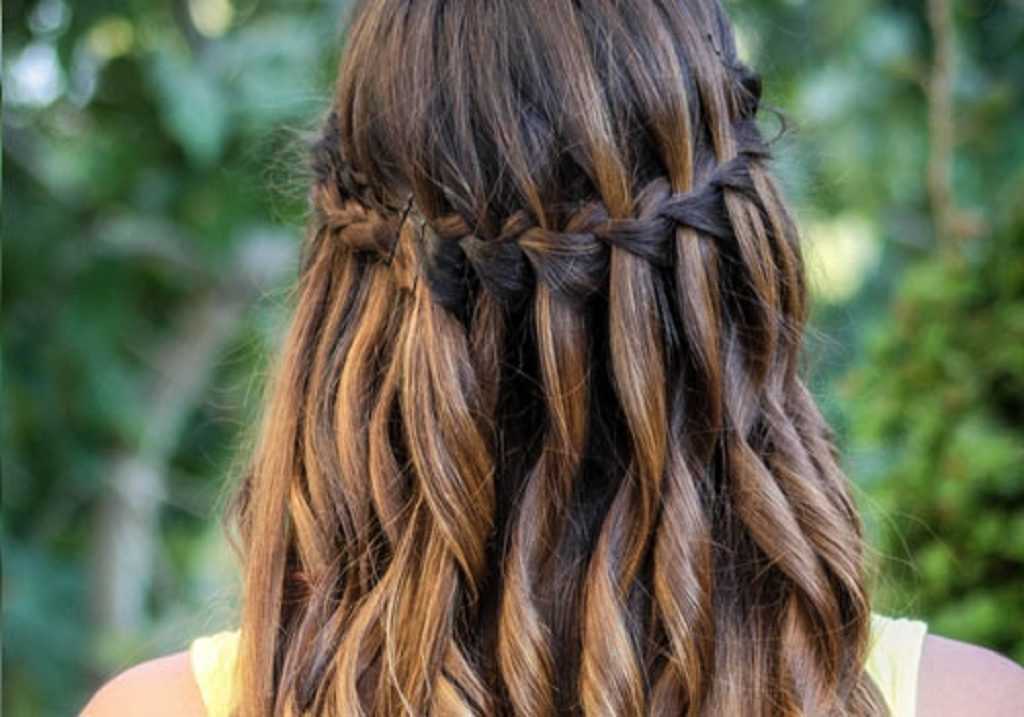 Пряди волос аккуратно спадают по окружности всей головы. «Водопад» можно делать косами с обеих сторон, только по одной стороне или косу по косой.