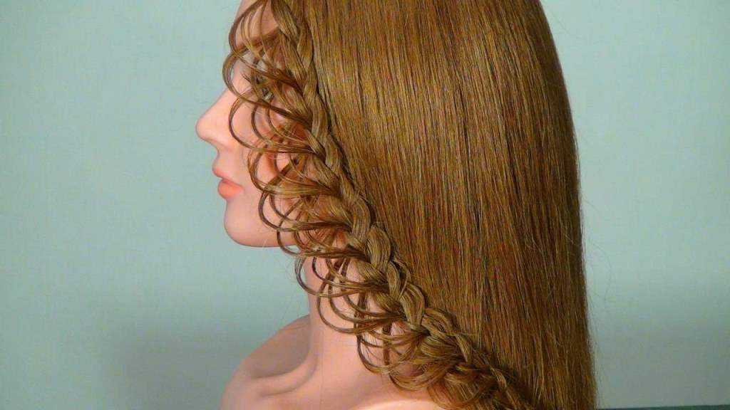 - Повторить плетение по всей длине волос, в конце придать объема растягиванием витков.