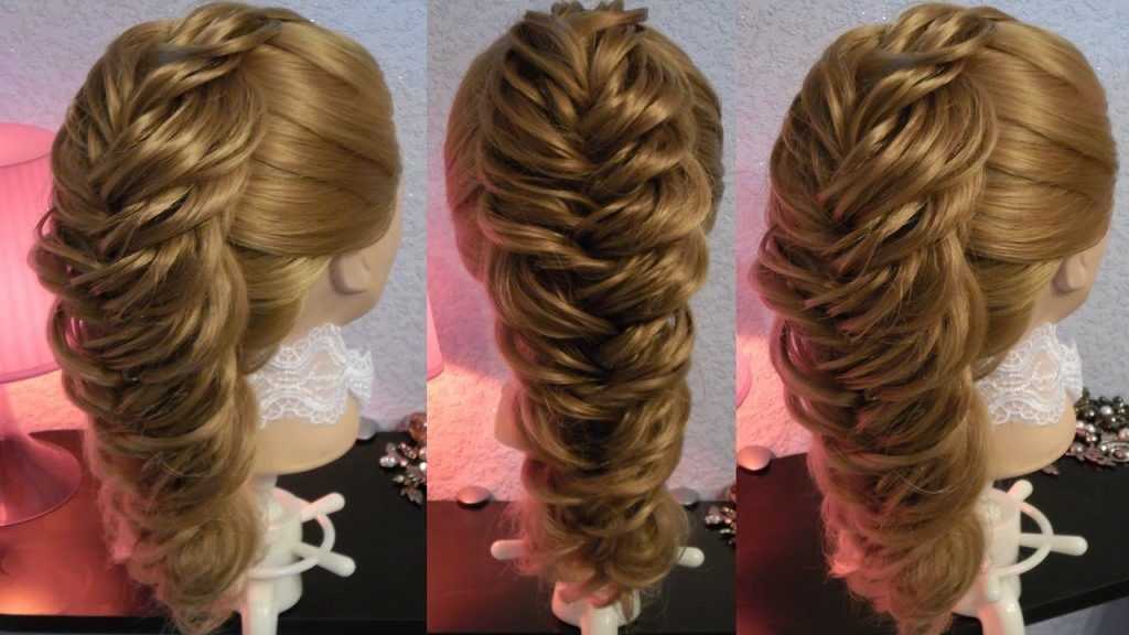 Чтобы рыбий хвост получился пышным, нужно придать сначала объем всем волосам, сделав начес или локоны, а затем плести из них обычным способом косу.