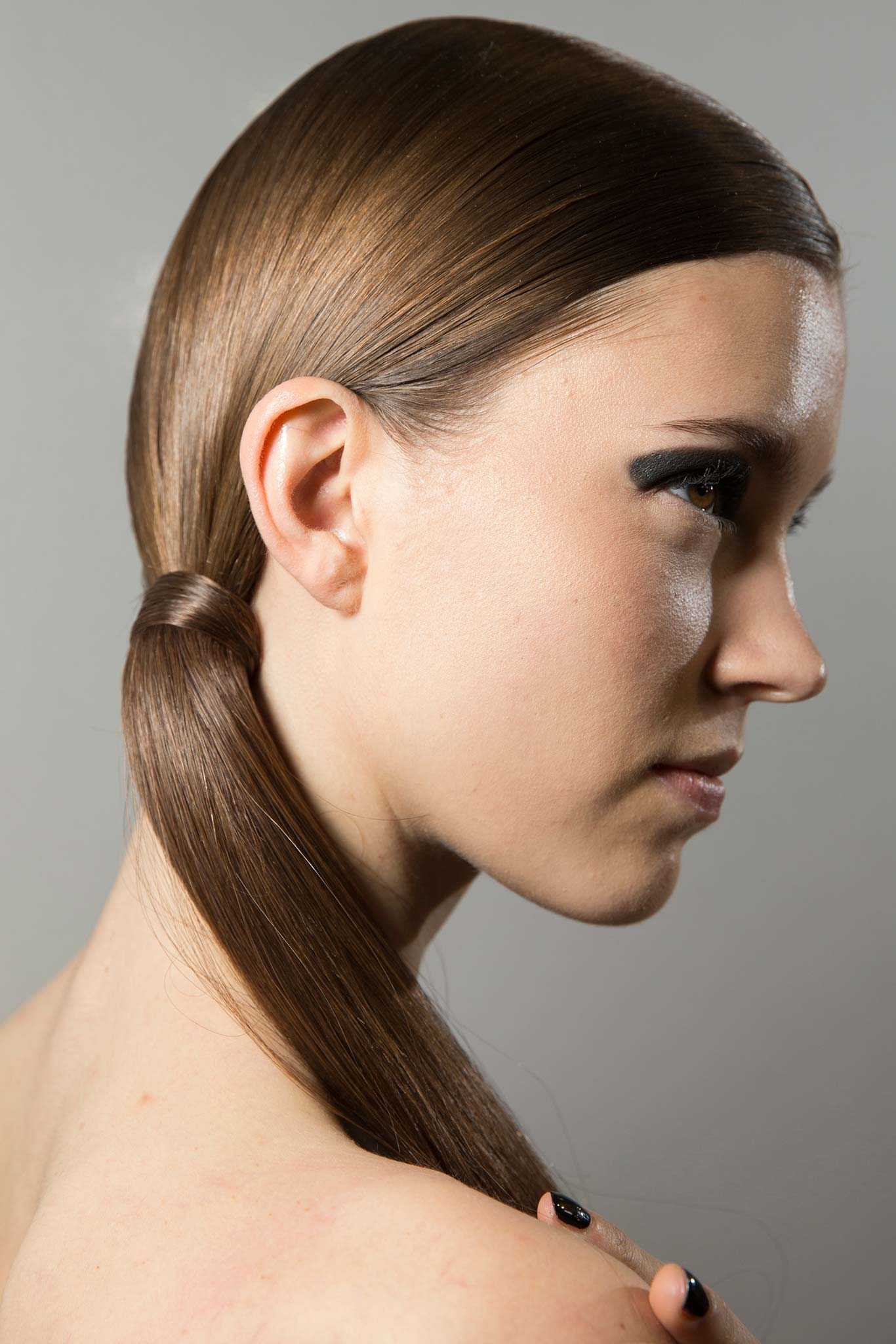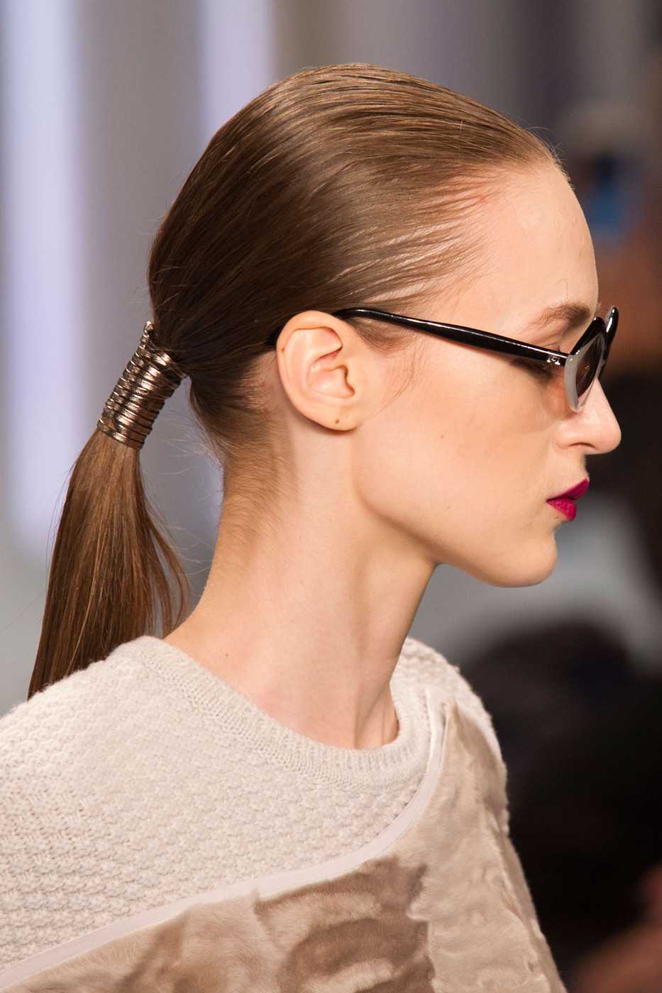 Простые пучки без лишней текстурности и переплетений – то, что всегда уместно в тандеме с офисным луком.