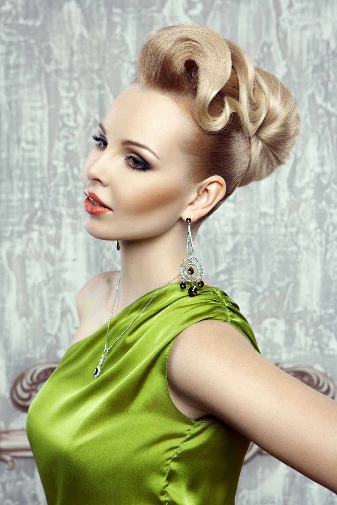 Отличительной чертой подобных причесок является замысловатые формы и наличие крупных, бросающихся в глаза украшений: