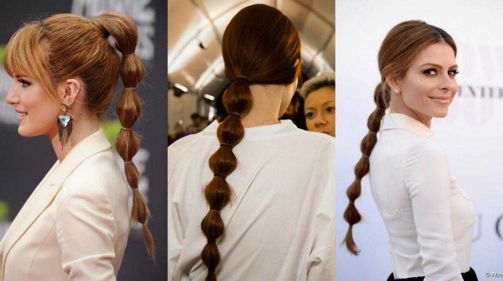 Все что нужно это тонкая резинка и пару невидимок или шпилек. Собираем в высокий хвост и на последнем обороте резинки не протягиваются до конца. Оставшийся конец хвоста нужно обмотать вокруг основания хвоста. Такой вариант подходит как для средней длины, так и для очень длинных. В случае длинных, их нужно будет несколько раз обмотать вокруг полученного пучка и хорошо закрепить невидимками. Такой пучок может стать отличный вариантом для тех, кто ищет простые прически на средние волосы и длинные.