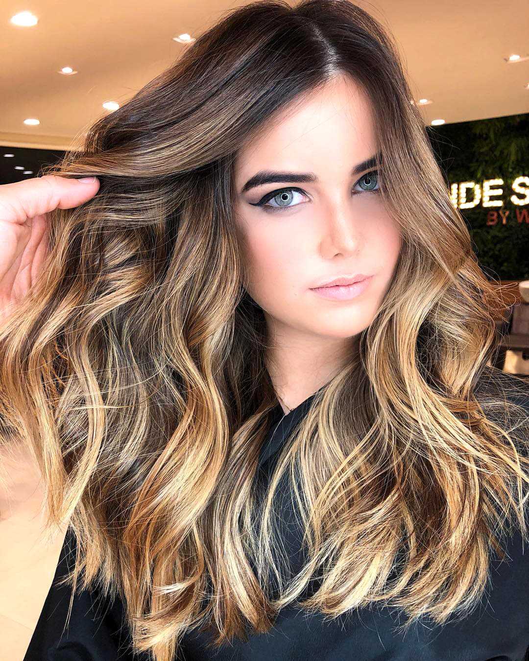 Балаяж — частичное осветление отдельных прядей с максимальной растушевкой у корней. Техника способствует визуальному увеличению объема волос, придает глубину. Отлично смотрится на прямых волосах и локонах разной длины. Эффектнее такое окрашивание выглядит на длинных темных волосах. Балаяж обыгрывает природный цвет, делая его сияющим.
