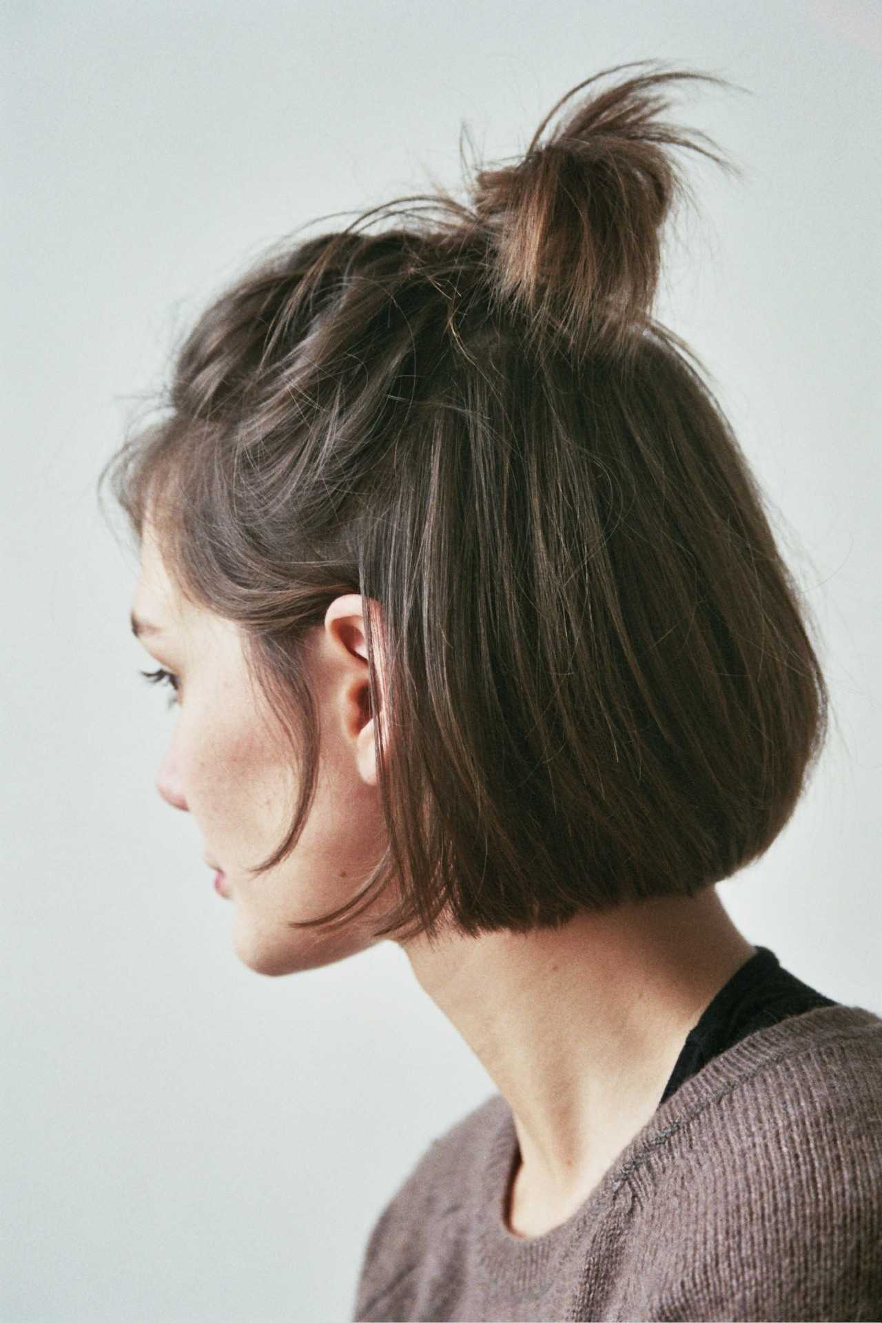 Последние несколько лет и 2020 год не исключение, на пике популярности прическа «hun» — пучок на распущенные волосы. Такая прическа не занимает много времени, нужно лишь, чтобы волосы были под каре или удлиненное каре.