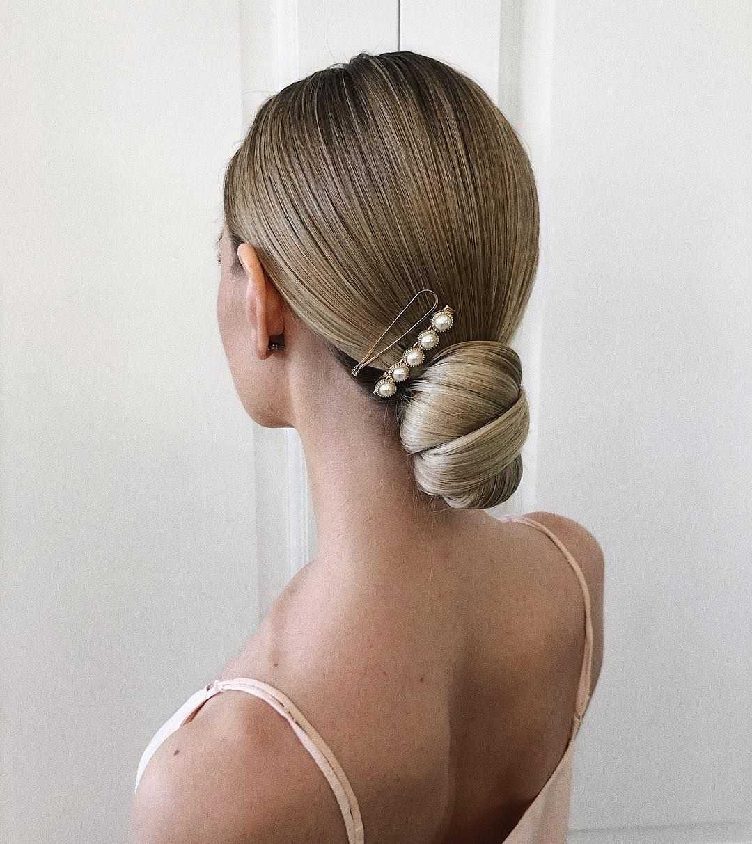 Пучок в последние годы — отражение элегантности и женственности, поэтому идеально подойдет для выпускного вечера. Идей для укладки множество: от гладкого пучка до композиций с косами и локонами, украшенными живыми цветами, лентами, бантами или необычными, удивительными по красоте заколками.