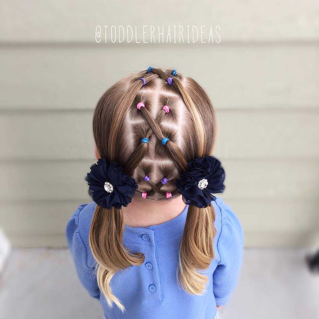 Оригинальное плетение-сеточка из обычных хвостиков никого не оставит равнодушным. Ваша дочурка обязательно окажется в центре внимания.