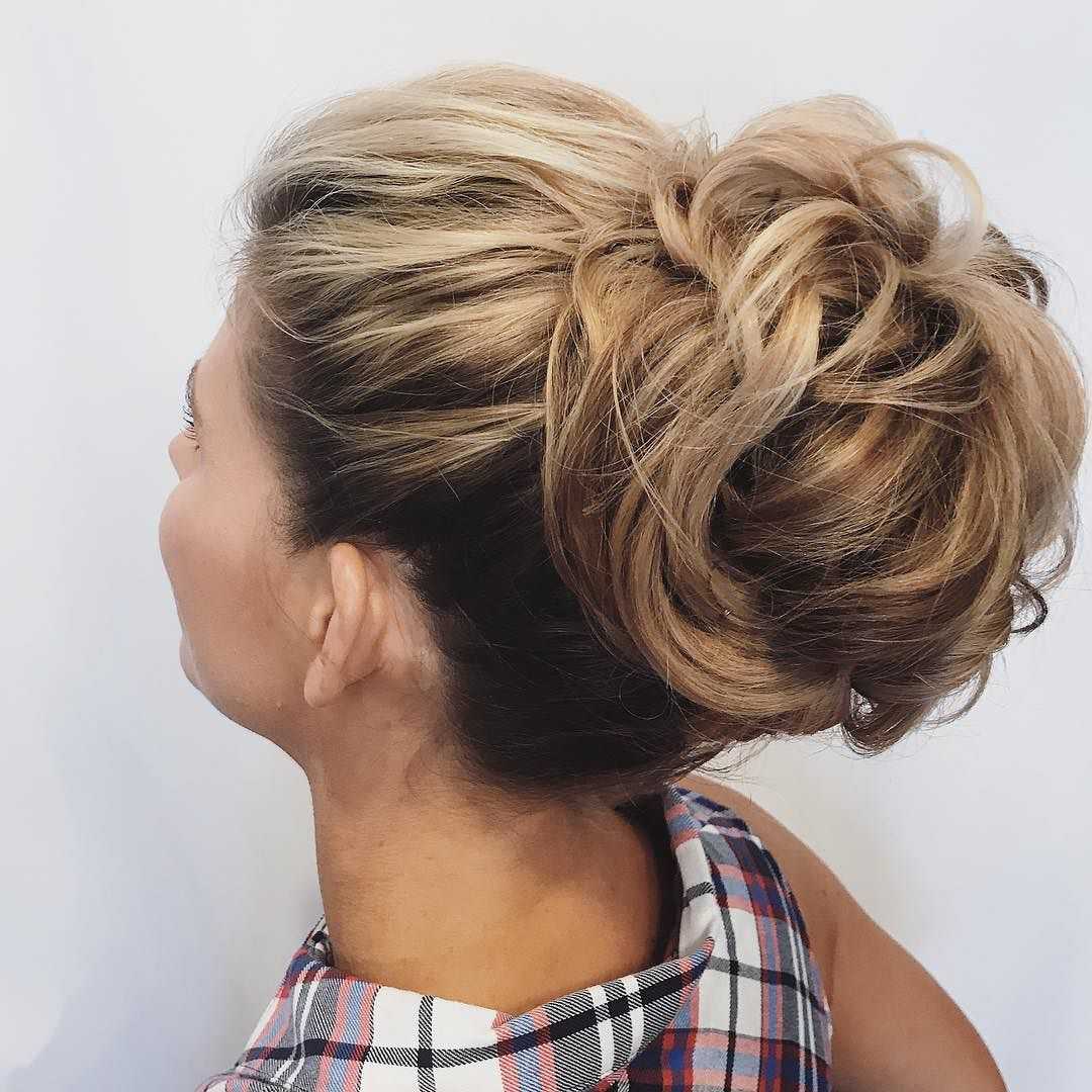 Короткие волнистые волосы не повод отказывать себе в создании пучка. На помощь придут резинки-шиньоны, подходящие по оттенку, и парикмахерские бублики.