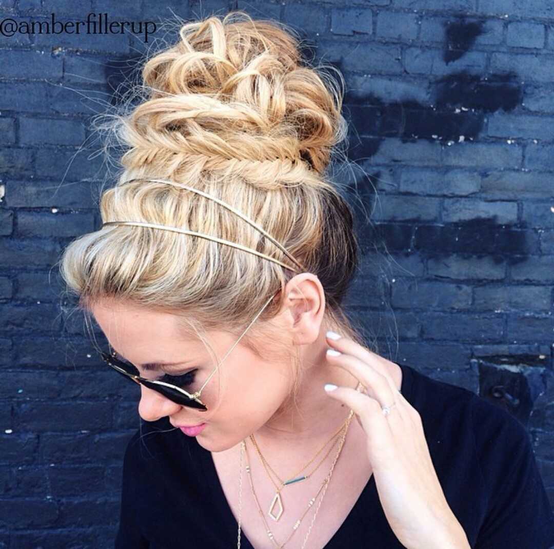 Идей по оформлению пучков огромное количество. Для длинных волос отлично подойдет высокий пучок, а для средних локонов, которым может не хватить длины, можно сделать низкий. К примеру, скрепив резинкой на макушке хвост и завязав его в узел, получается быстрый способ оформления высокого пучка, который так популярен у подростков.