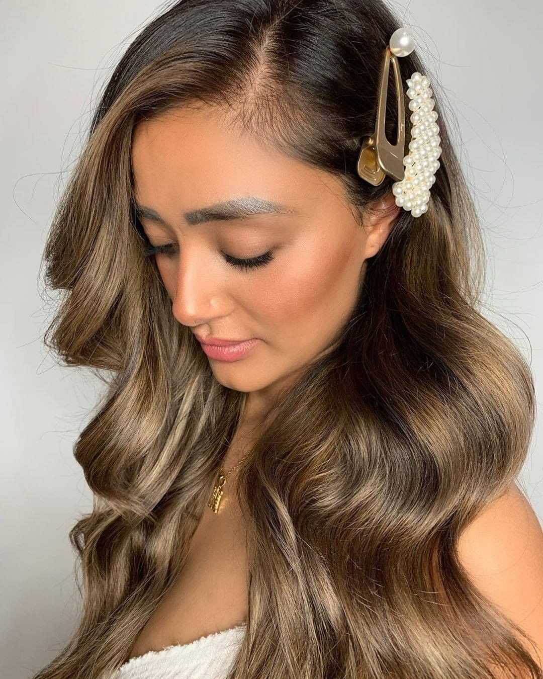 В центре внимания – чёлка и боковые пряди, которые укладываются в классические волны с помощью невидимок. Стиль напоминает об утонченных красавицах Голливуда 30-х годов.