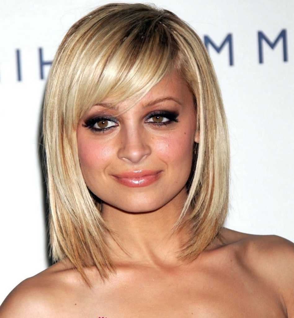 Скрыть мелкие несовершенства лица в сочетании с округлой прической сможет косая удлиненная челка.