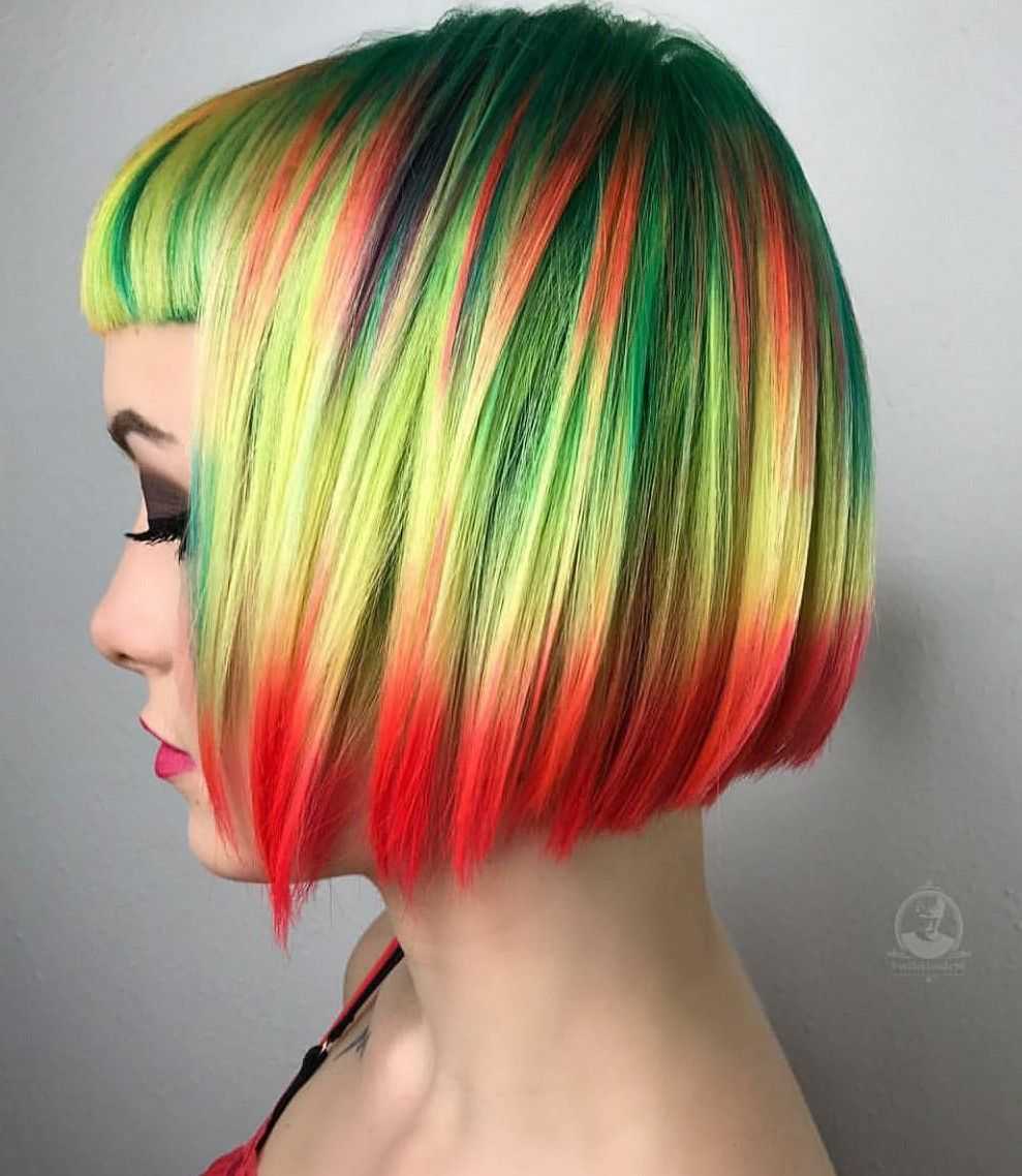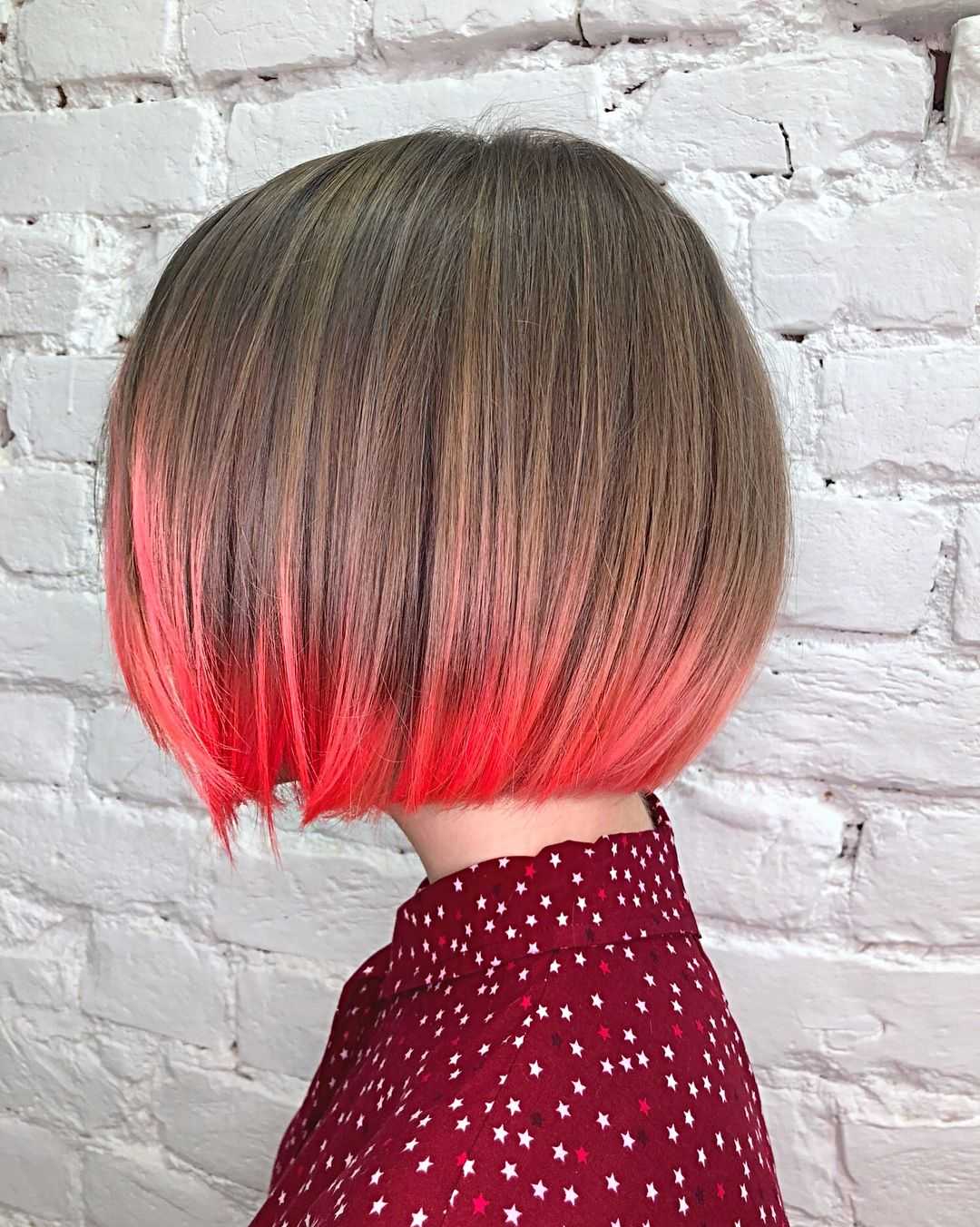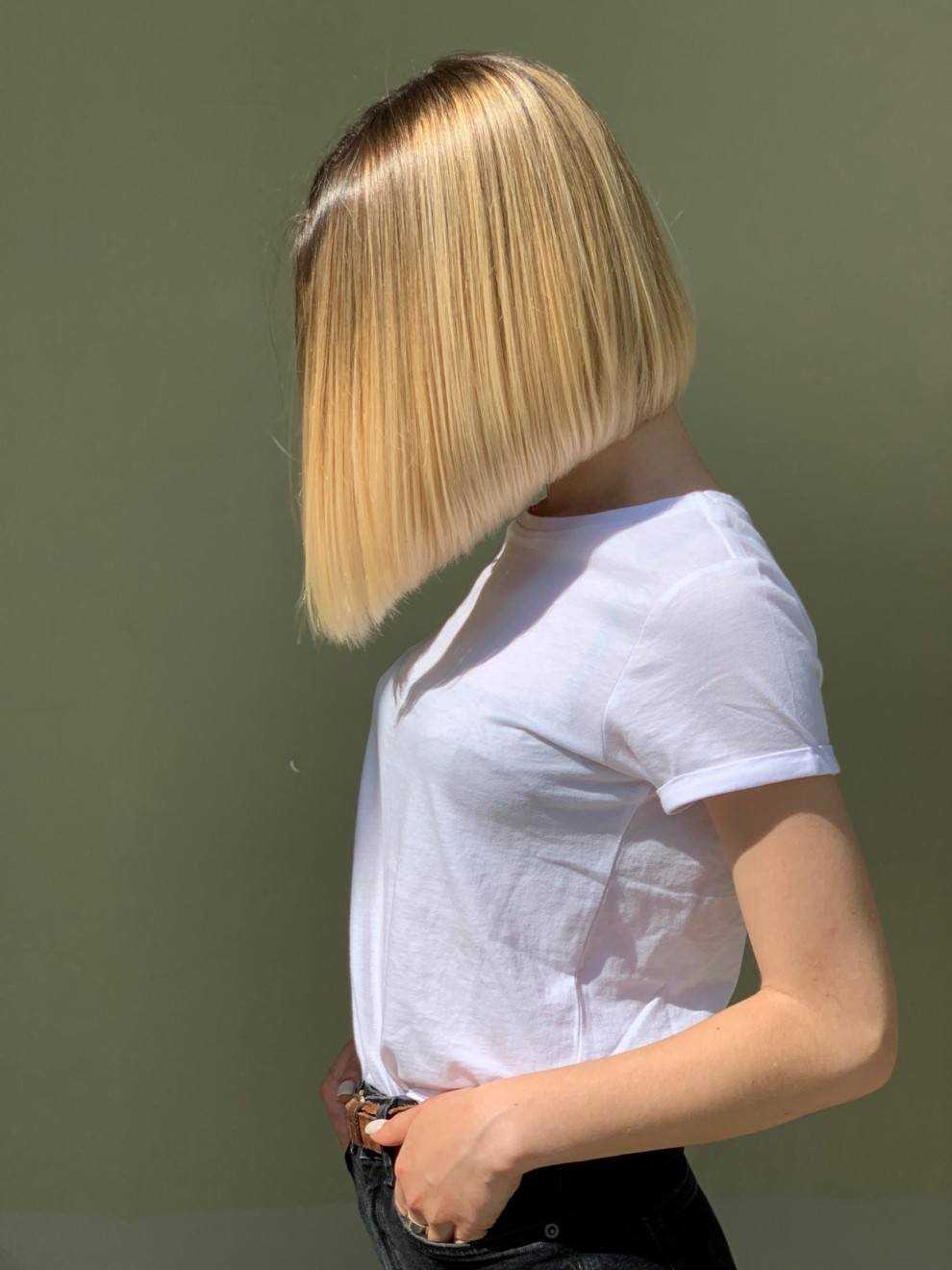 Такие модные стрижки с ровным срезом идеально смотрятся на длинных прядках, а также на среднем бобе.