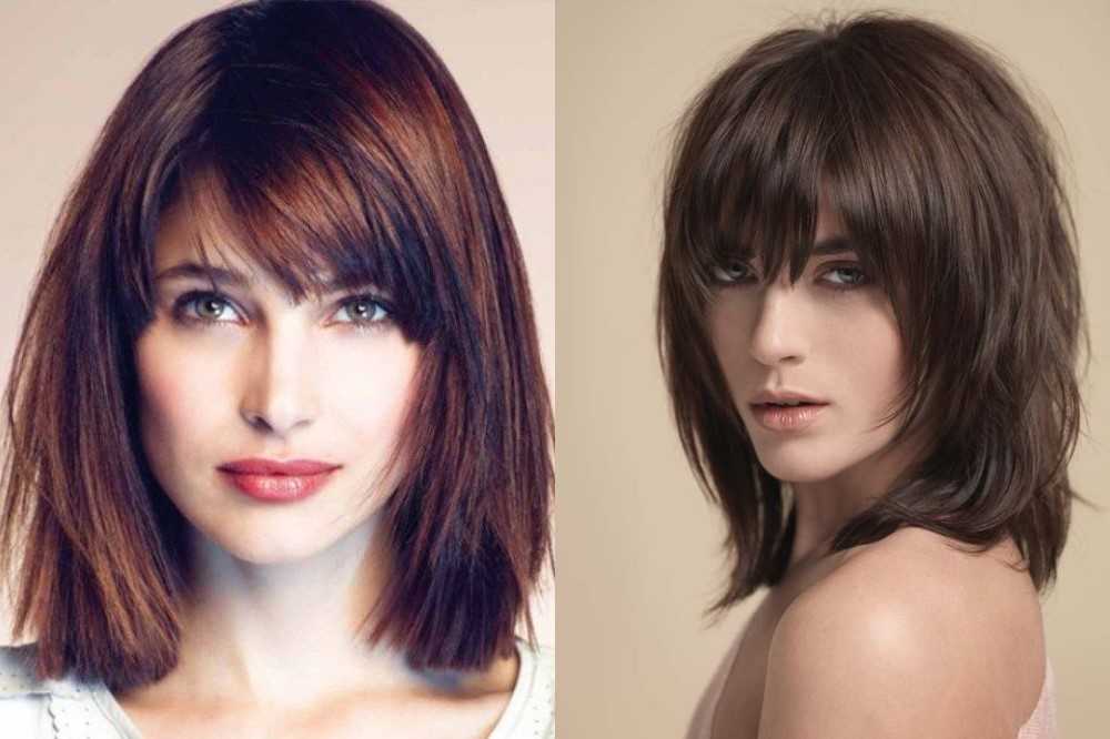 Обладательницам угловатого овала подойдут удлиненное каре с боковым пробором, градуированные прически, стрижки с челкой со рваными краями.