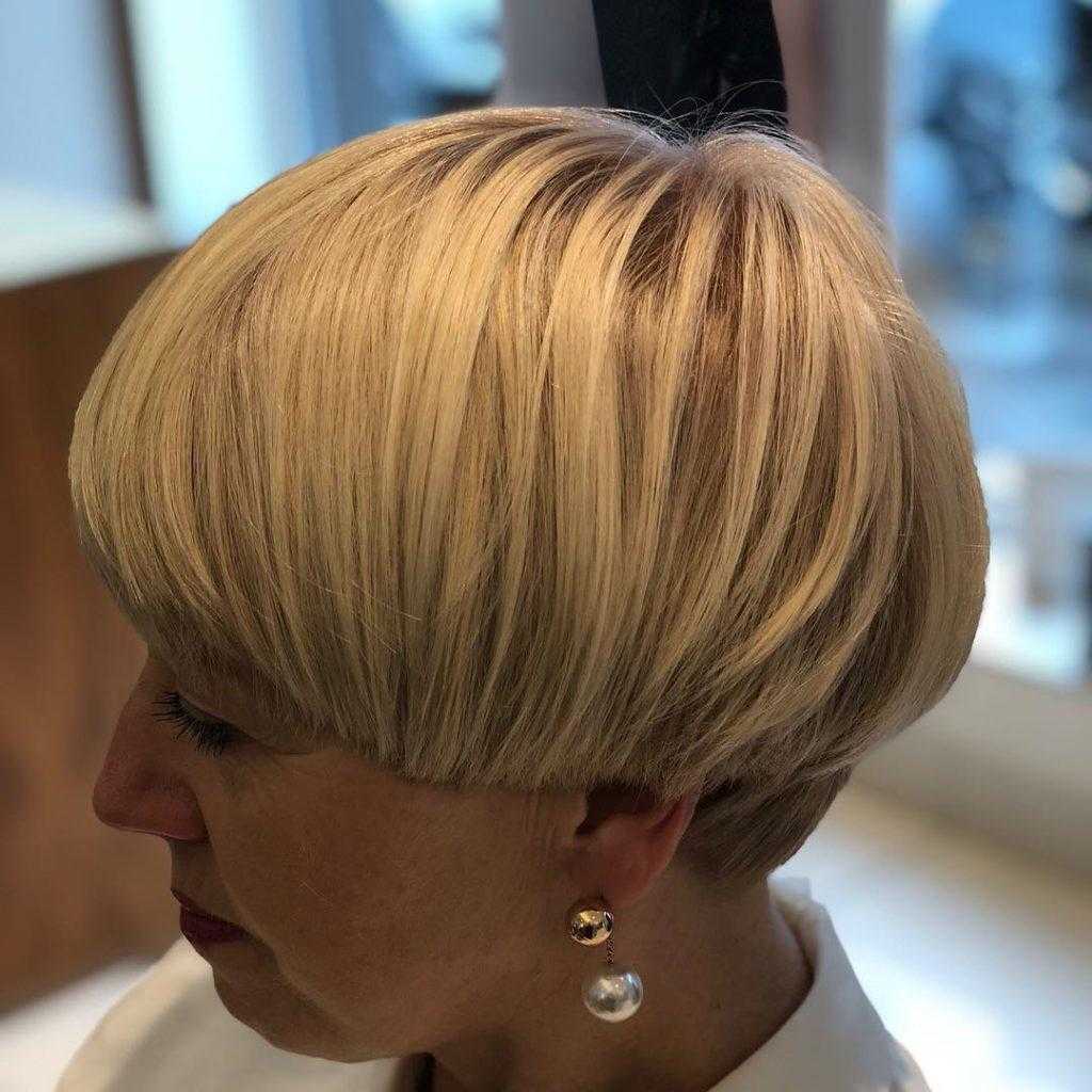Такая модная в 2020 сезоне стрижка на короткие волосы прекрасно подходит для женщин за 50, которым удалось сохранить область шеи в хорошем состоянии. С помощью такого преображения так легко создать свежий, актуальный и женственный образ.