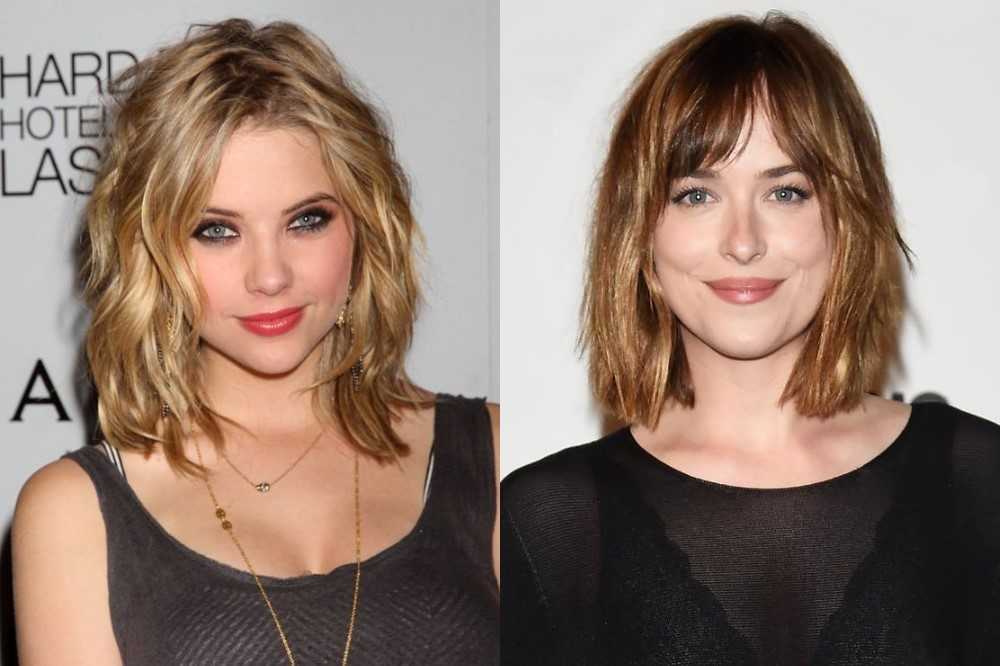 Для круглого лица обычно выбирают лонг-боб или другие варианты с удлиненными спереди прядями. Выигрышно при таком овале смотрится и косая челка.