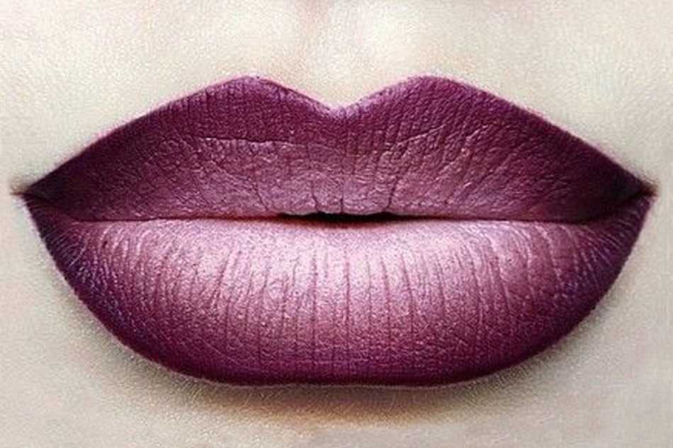 В макияже для губ омбре светлый оттенок, располагающийся между тёмными, зрительно увеличивает губы
