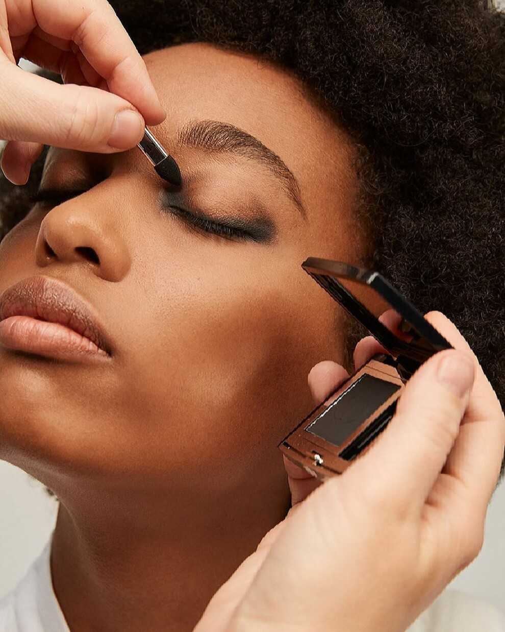 Чтобы они держались подольше, рекомендуется использовать не только тени, но и карандаш. Сначала карандаш обозначает направляющую линию, а тени наносятся кистью поверх и растушёвываются.