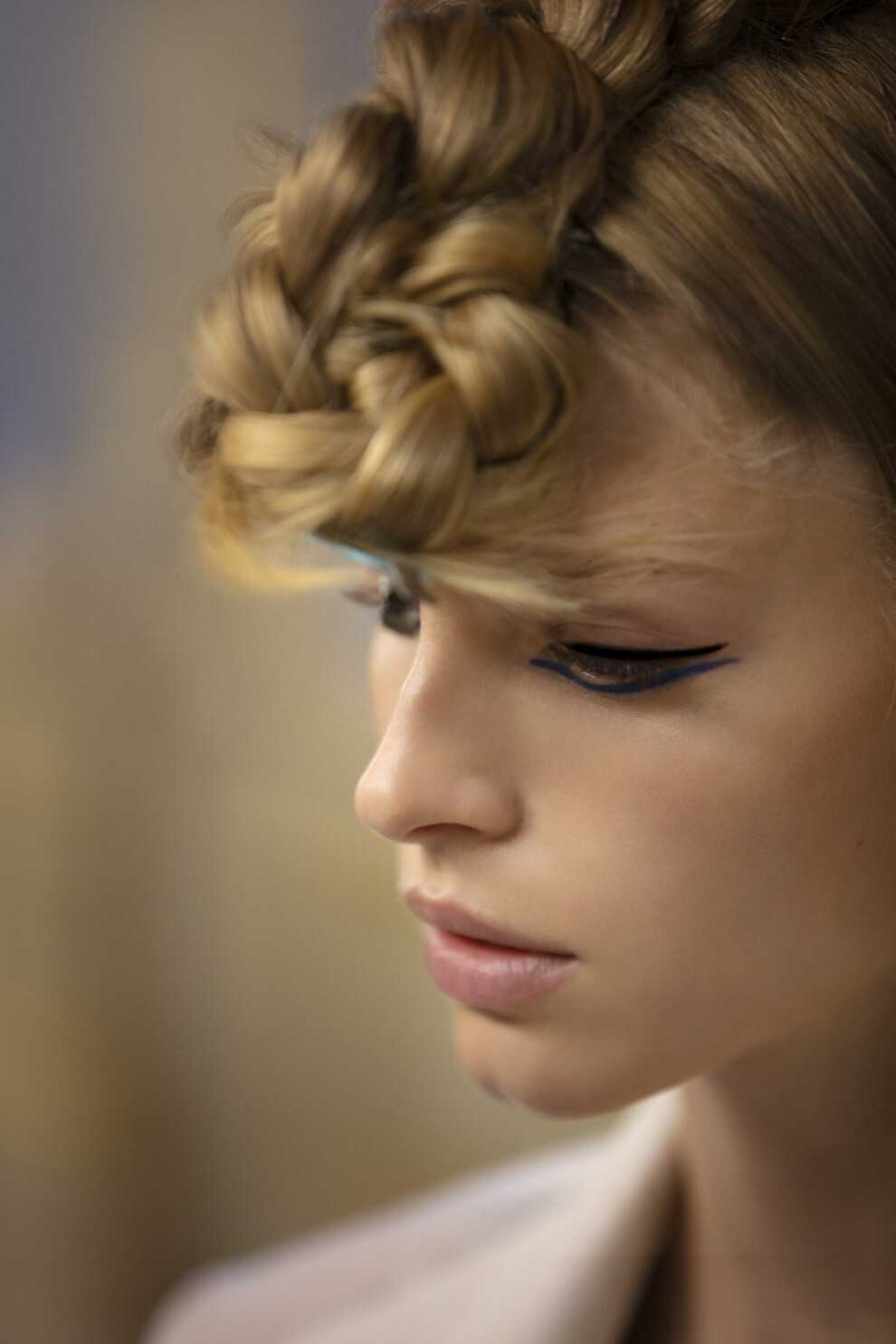 Макияж с голубыми тенями и бесцветным блеском. Коллекция David Koma