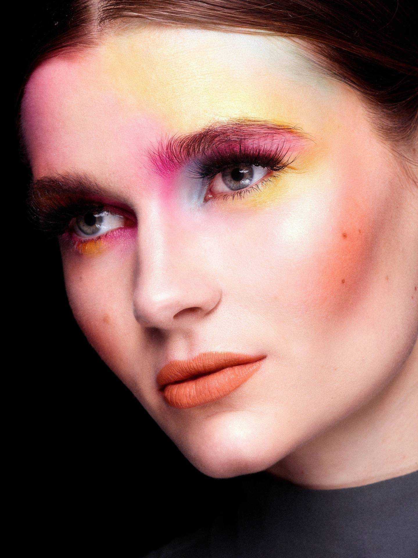 Сильно накрашенные глаза и губы обязаны согласовываться с яркими волосами. Исходя из этого, подводка для глаз должна быть ярких оттенков, а тени с румянами контрастных. Косметика на лицо наносится в большом количестве.Приветствуется, когда кричащий макияж 80-х подходит к создаваемому образу и не выбивается из общепринятых на сегодняшний день стилистических правил.Актуальными в данном случае являются все цвета радуги, особенно, синие, оранжевые, зелёные и красные.