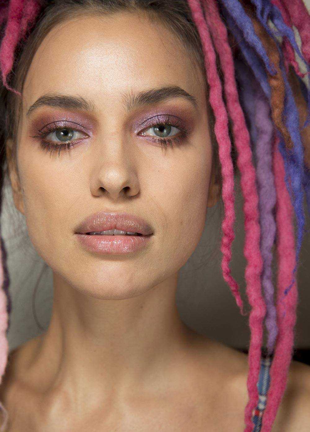Влияние 80-х и 90-х касается не только предметов гардероба. Но модный макияж лета и весны в следующем сезоне будет выглядеть куда аккуратнее! Монотени – самая выразительная тенденция. Наносите тени голубого, зеленого или розового цвета на все верхнее веко.