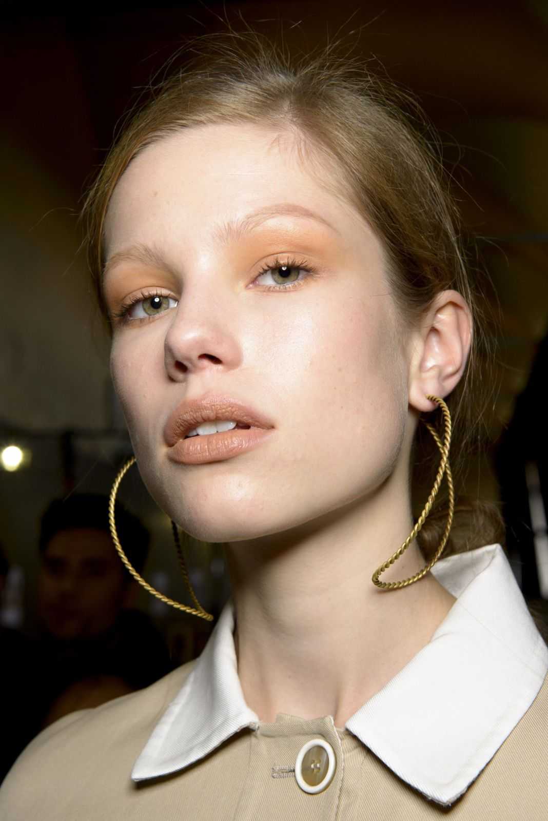 Интересная история происходит с румянами. В моде викторианская романтика: розовые щеки. А вот оттенки кирпичного и оранжевого наносят щедро, при этом хорошо растушевывая. На модных показах стилисты использовали румяна вместо теней, подкрашивали им спинку носа и подбородок.
