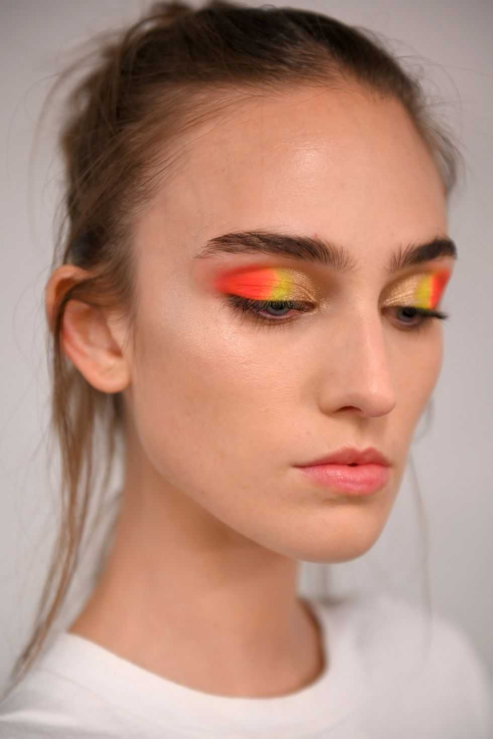 Макияж со стрелками и легким сиянием кожи Неоновые оранжевые стрелки — макияж 2022