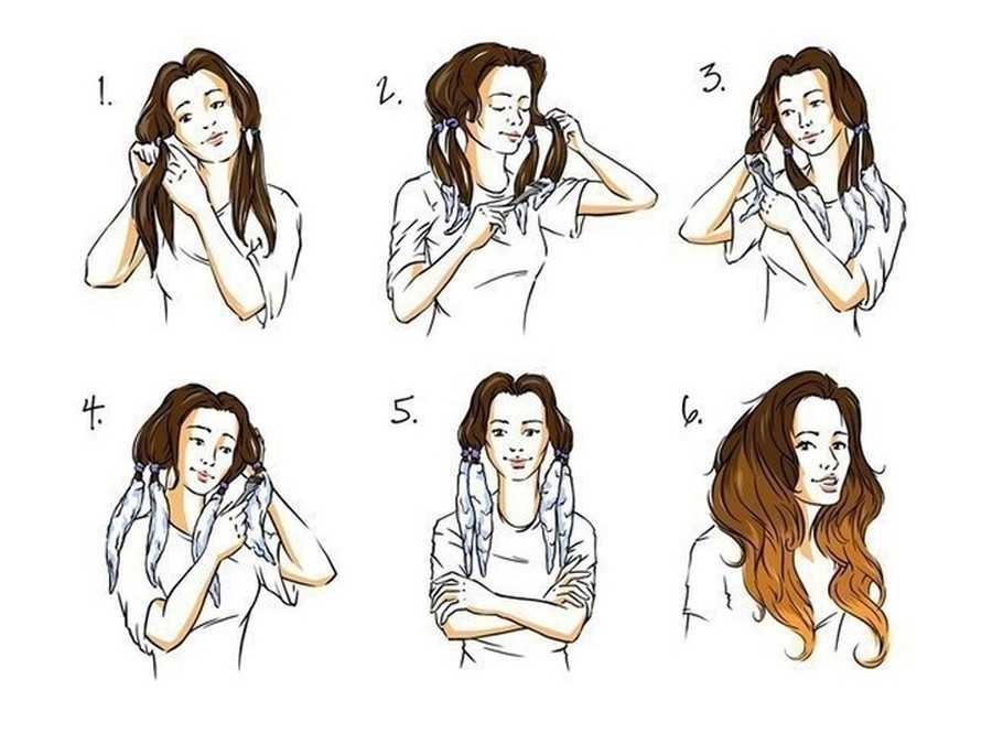 Шаг 11: Разделите волосы и закрепите каждую прядь лентой.