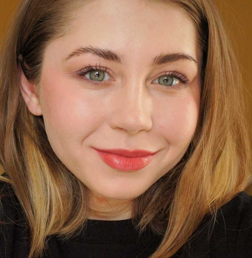 В качестве румян наношу так: ставлю пару точек и растушевываю при помощи пальцев или кисти, которой до этого наносила тональный крем. При желании можно цвет наслаивать, но я боюсь переборщить. В целом, можно без проблем создать как легкий полупрозрачный румянец, так и довольно активный.