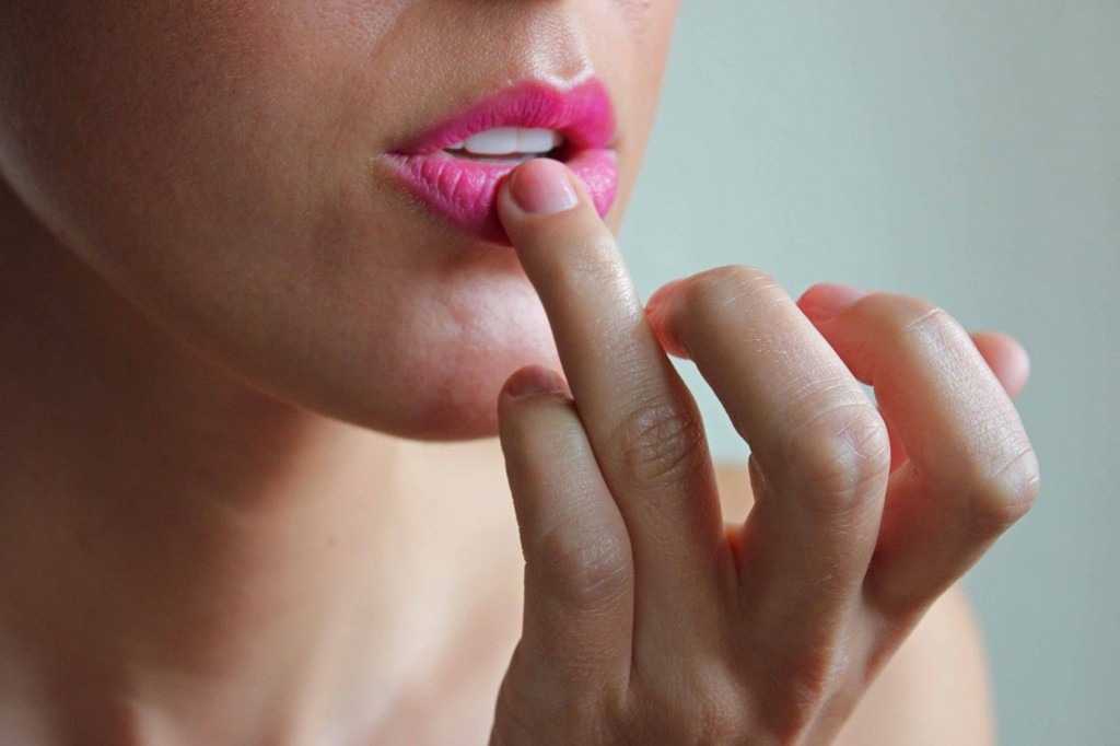 Подушечками пальцев средство набирают из тюбика и ставят несколько точек на губах, а затем аккуратно растушевывают пигмент.