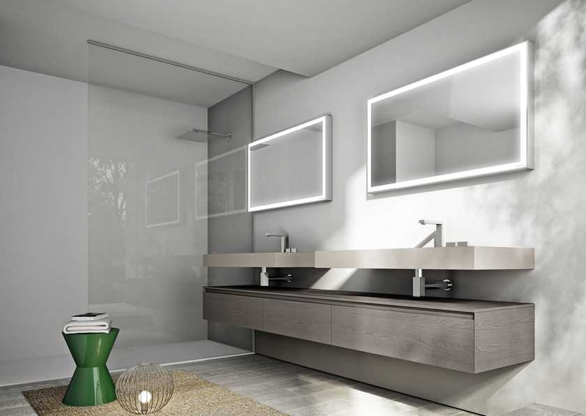- Подсветка. Одно из самых важных свойств стеклянного изделия после конфигурации. Именно правильное освещение добавляет качество отражению. Формы подсветки: декоративная и функциональная, то есть основная цель – оптимальное качественное освещение объекта. Самые хорошие по освещению подсветки на сегодняшний день дают галогенные и LED лампы.