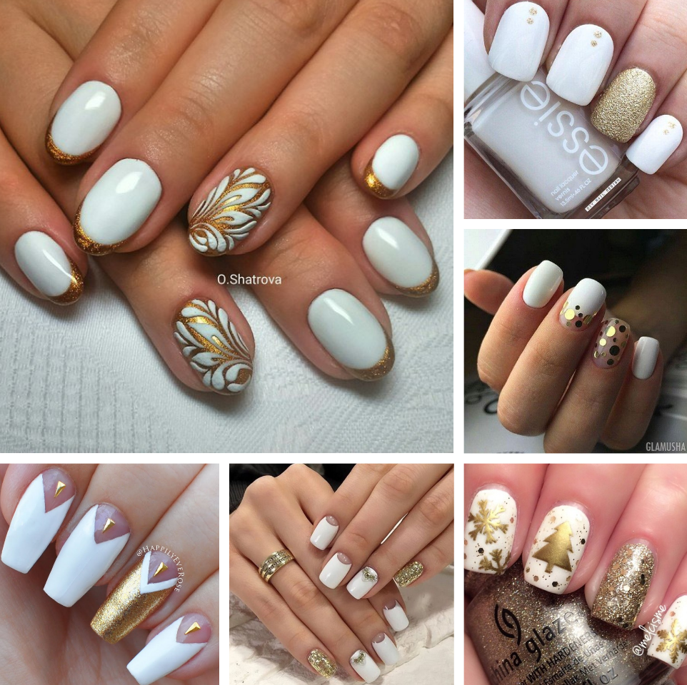 Коричневый цвет прекрасно сочетается с белым цветом. В таком дизайне маникюра коричневый цвет является доминантным. Белым цветом выделяют один или несколько ноготков. Отличным примером такого маникюра будет дизайн, когда безымянный пальчик покрывают прозрачной основой и на ней прорисовывают вензеля белого цвета. При этом остальные ноготки покрывают коричневым цветом, вензелями украшают лишь зону лунулы. Омбре тоже смотрится бесподобно.