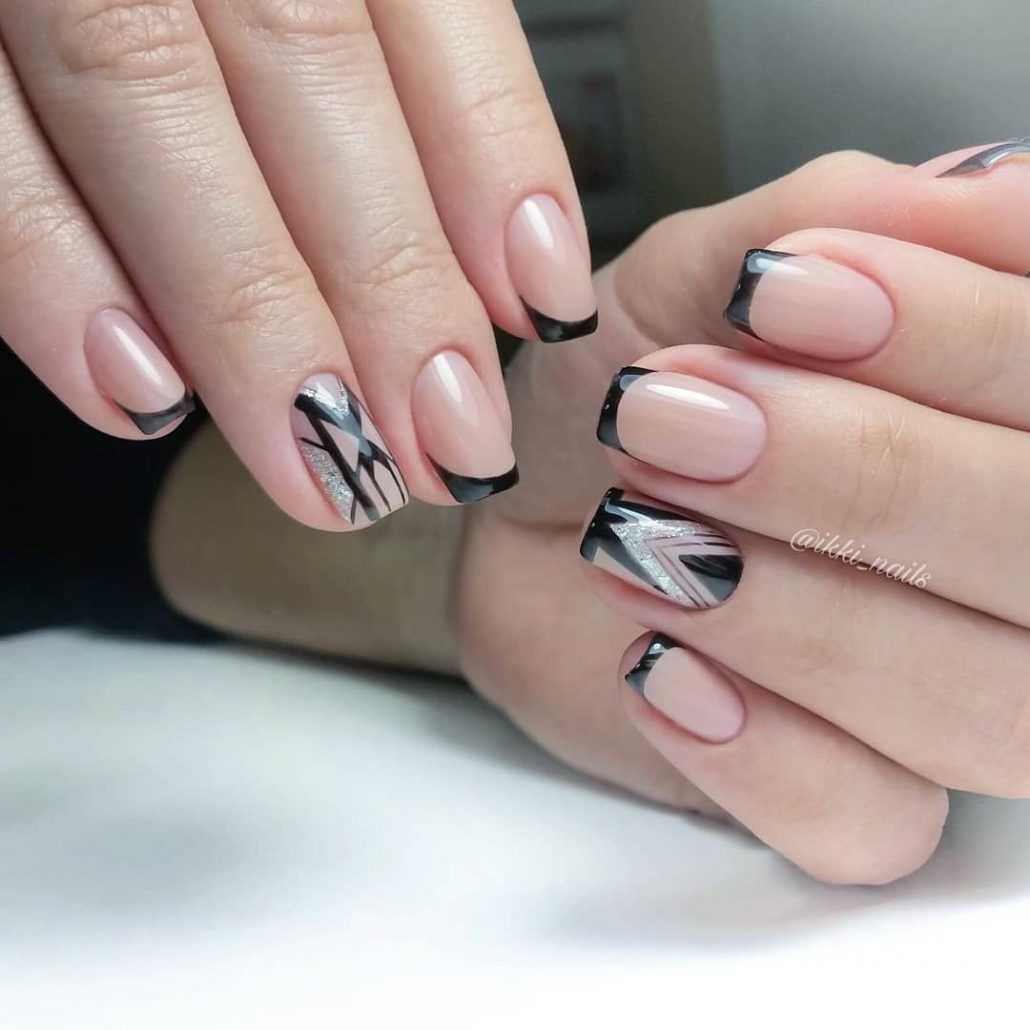 Помимо белого френча можно выбрать черный, блестящий, обратный, креативный.