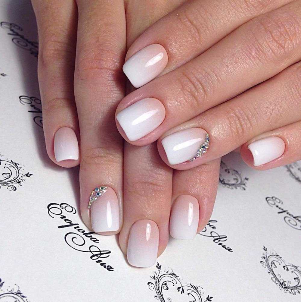 Градиент — наиболее красиво выглядит техника омбре при переходе из светло-коричневого в белый цвет. Возможен и противоположный вариант — градация из бледного телесного оттенка в темный бежевый. Такой переход не требует дополнительных украшений, однако можно добавить немного прозрачных страз для разнообразия повседневного дизайна.