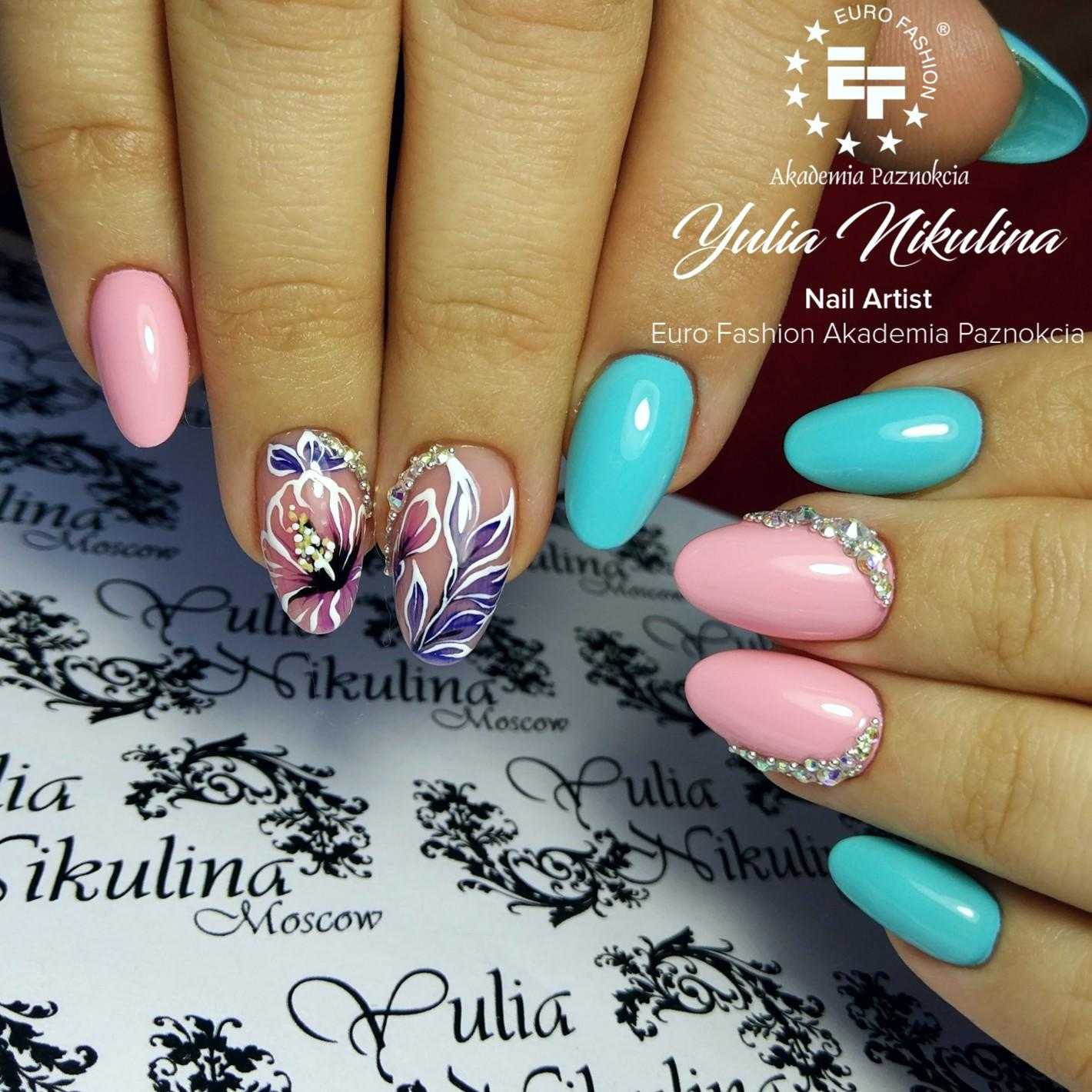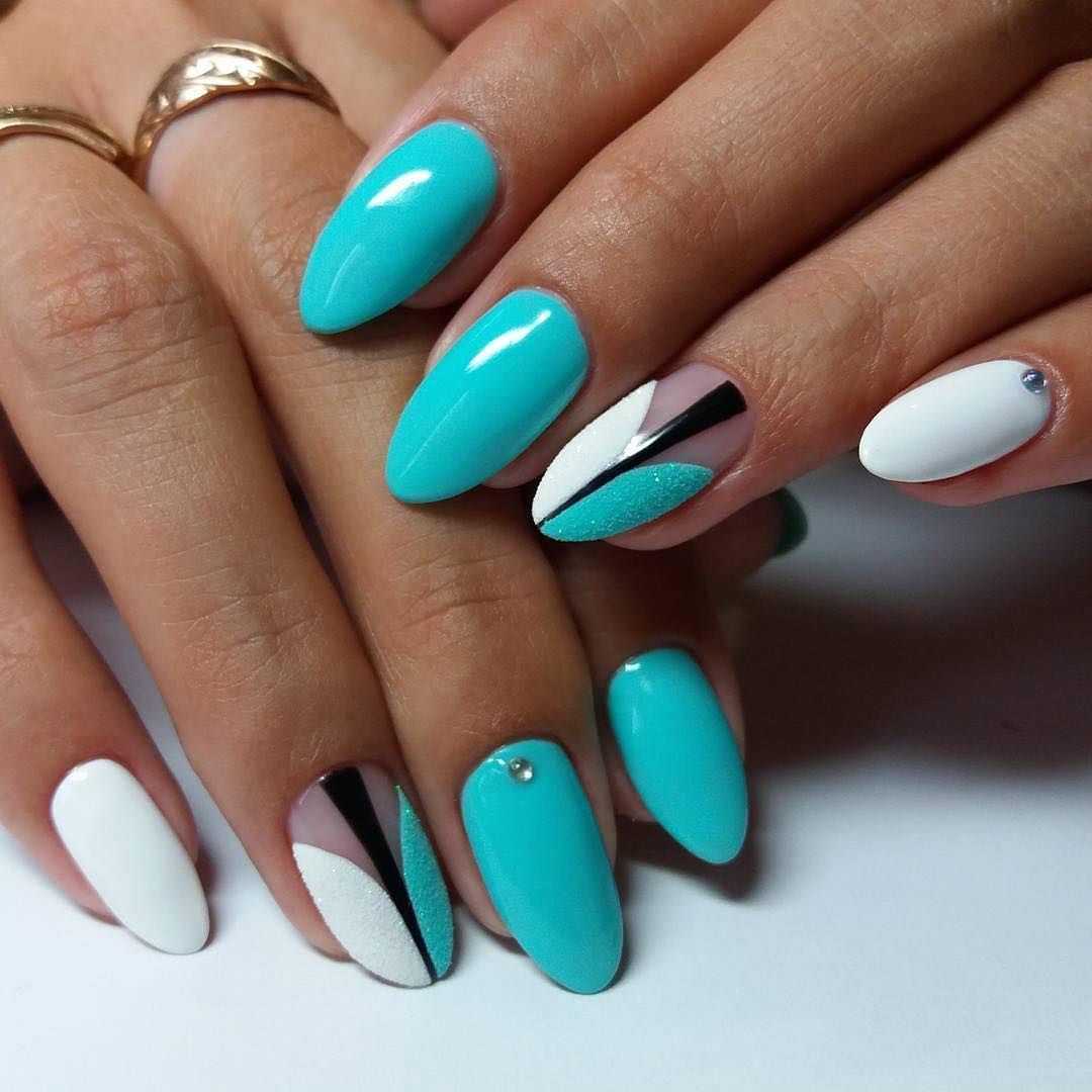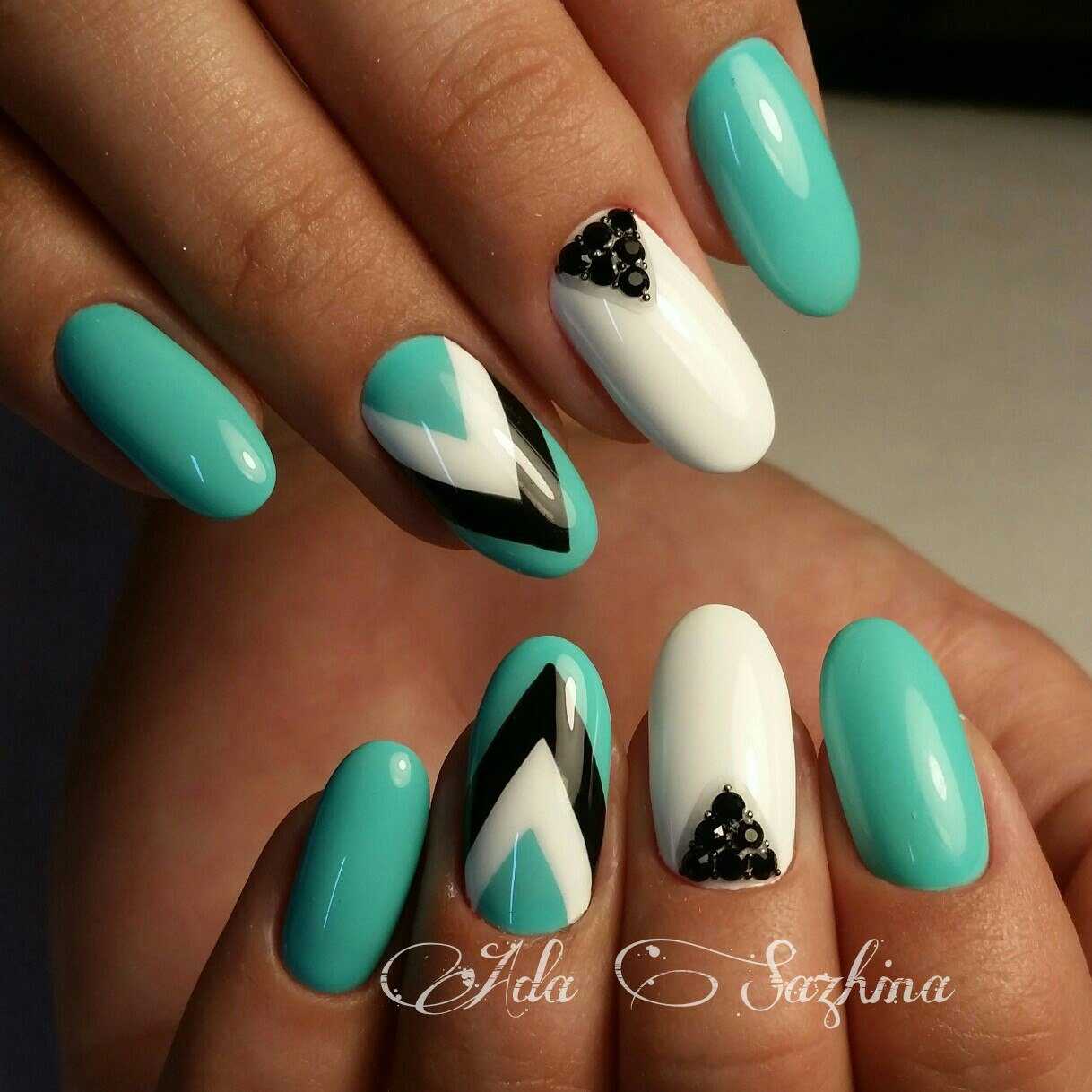 Бирюзовый цвет — потрясающая основа для дизайнерского маникюра. Он сочетается со многими цветами, довольно сдержанный, но благородный.
