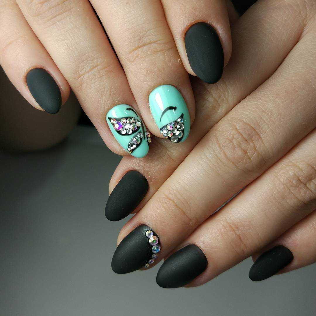Стразы, рисунки и блестки на маникюре с бирюзовым фоном: фото 2021-2022